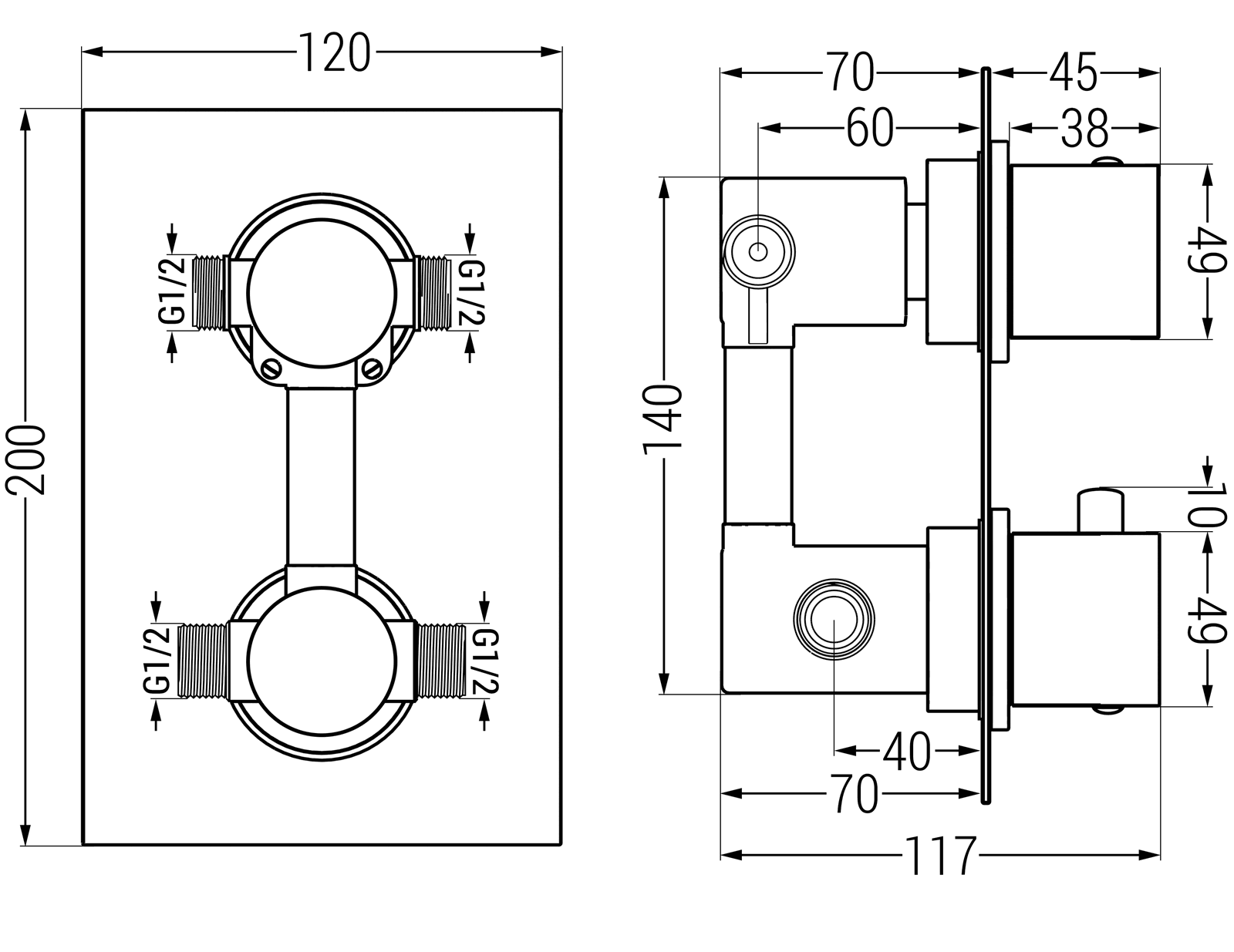 Csatlakozás: 2x Bemenet 1/2" és 2x kimenet 1/2"
