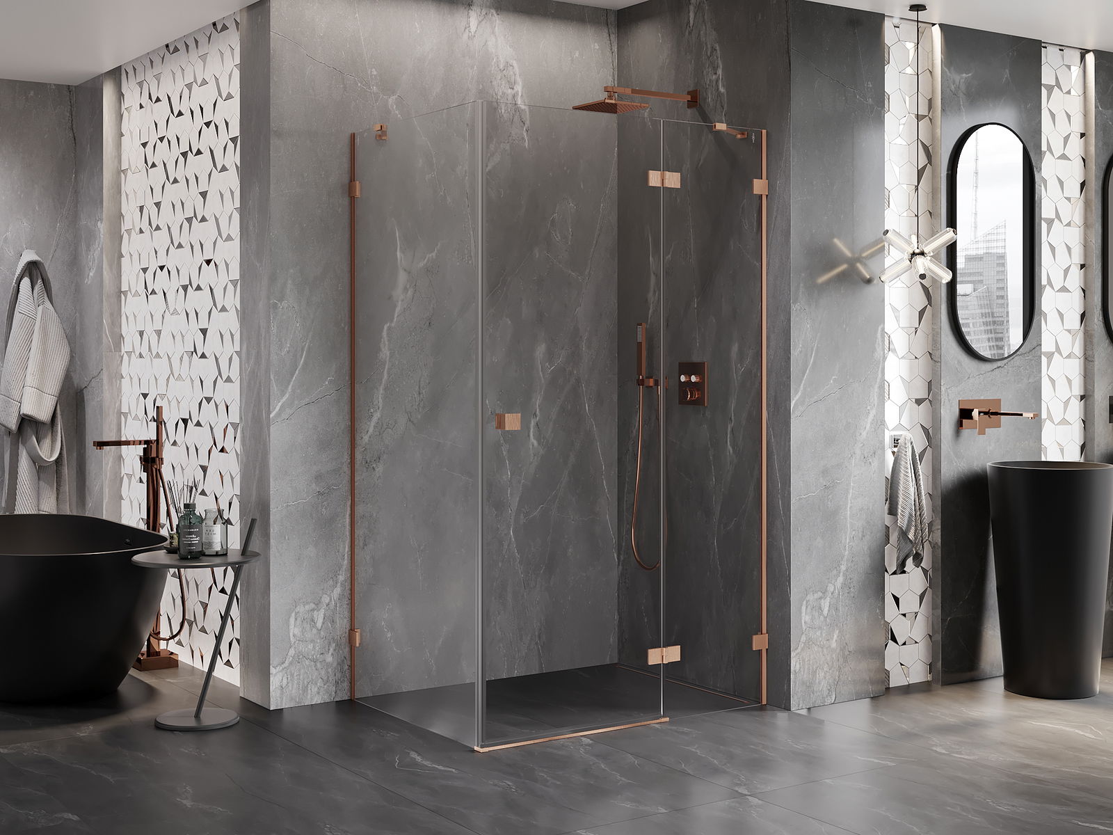 Mexen Lunar jobboldali, 100 x 80 cm-es, átlátszó, polírozott réz nyíló zuhanykabin - 834-100-080-65-00-P