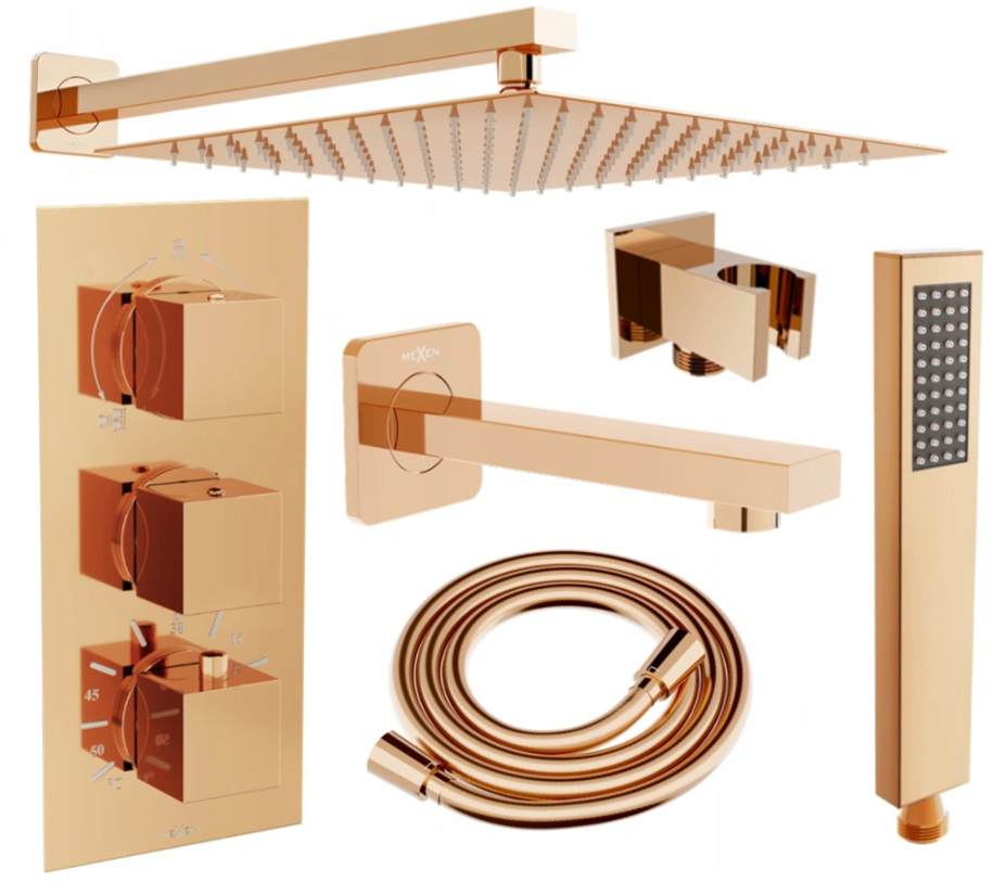 Mexen Cube DR02 rejtett kád-zuhany szett esőztetővel 25 cm, rózsaarany - 77503DR0225-60