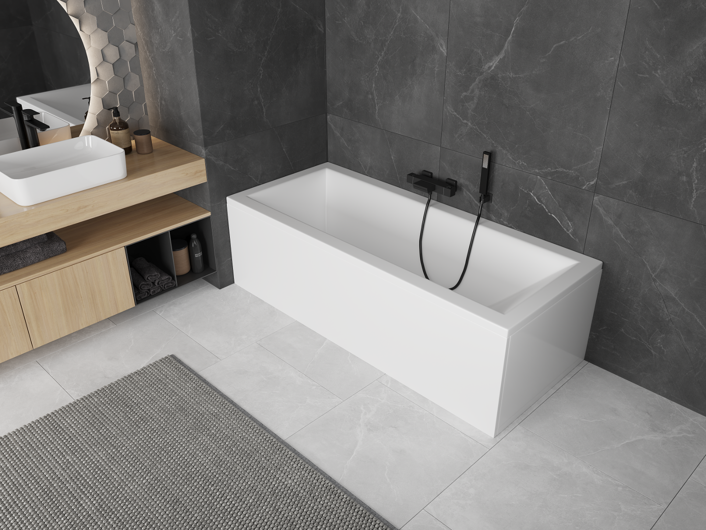 Az akril fürdőszobai felhasználása nagyon praktikus megoldás. Az akril jól tartja a víz hőmérsékletét, megakadályozva annak gyors kihűlését. Akusztikai tulajdonságokkal is rendelkezik, így csökkenti a zajt a fürdőszobában.