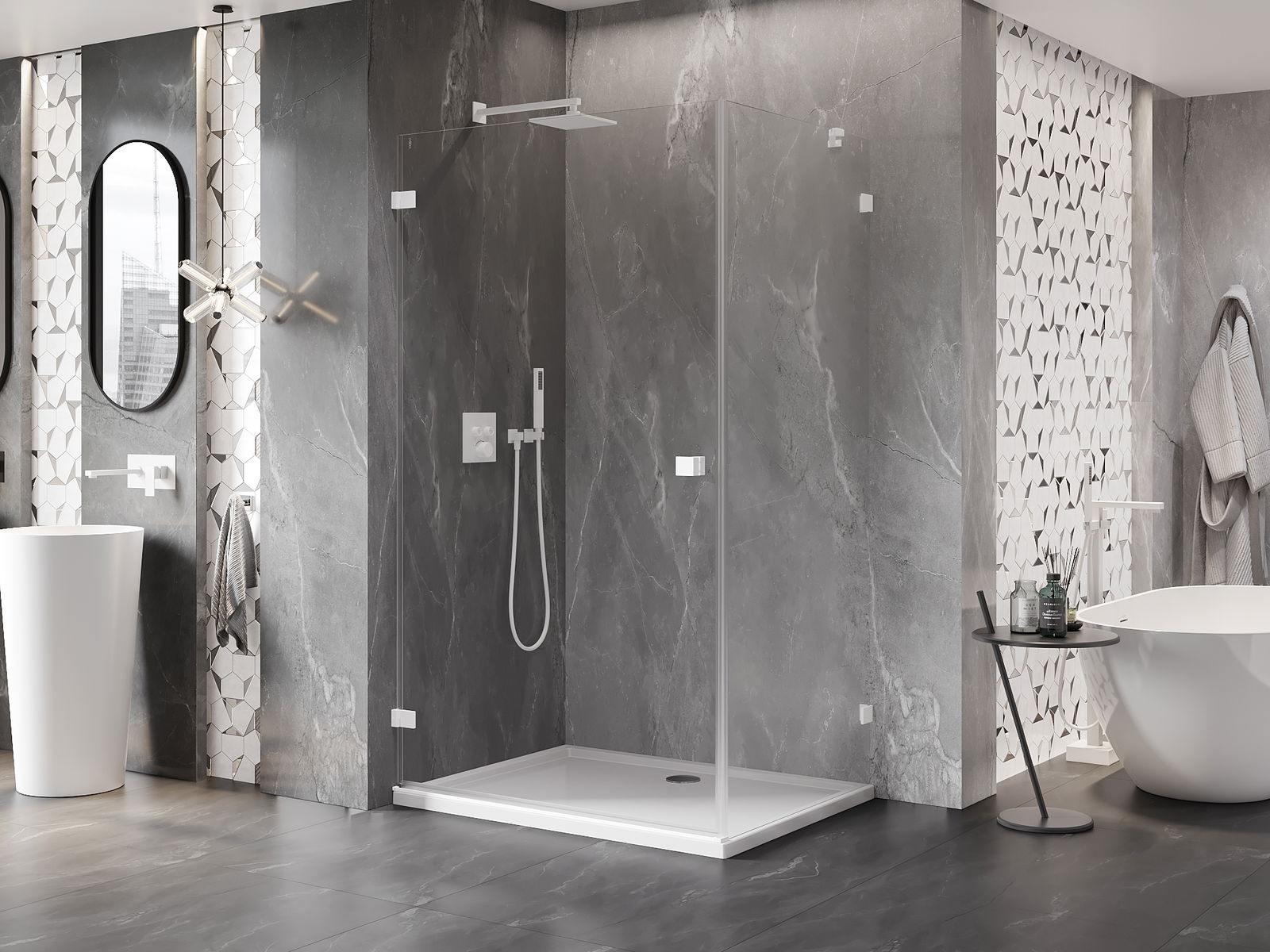 A terméket igény szerint felszerelheti akár a zuhanytálcára, akár közvetlenül a padlóra. Az univerzális szerelési mód lehetővé teszi a termék alkalmazkodását különböző típusú fürdőszobákhoz és térbeli konfigurációkhoz.