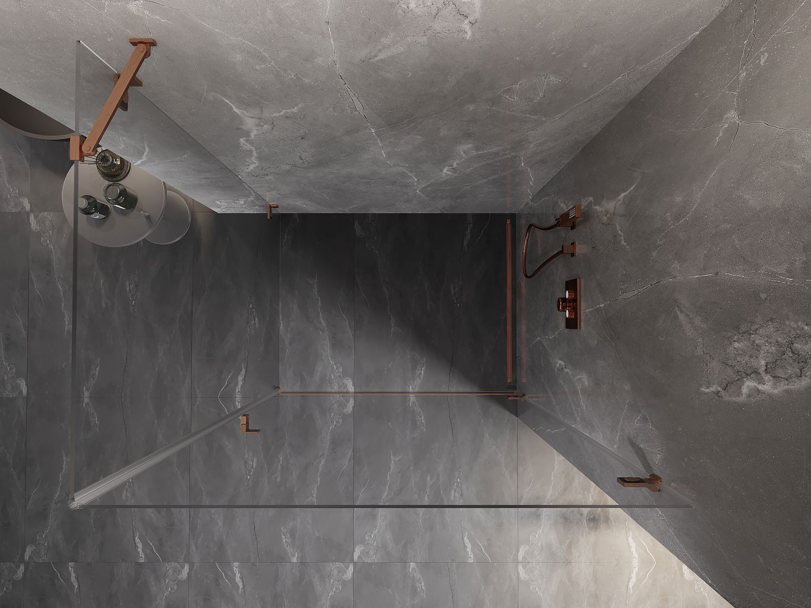 Mexen Lunar-B jobbos kifelé nyíló zuhanykabin 95 x 70 cm, áttetsző, csiszolt réz - 832-095-070-65-00-P