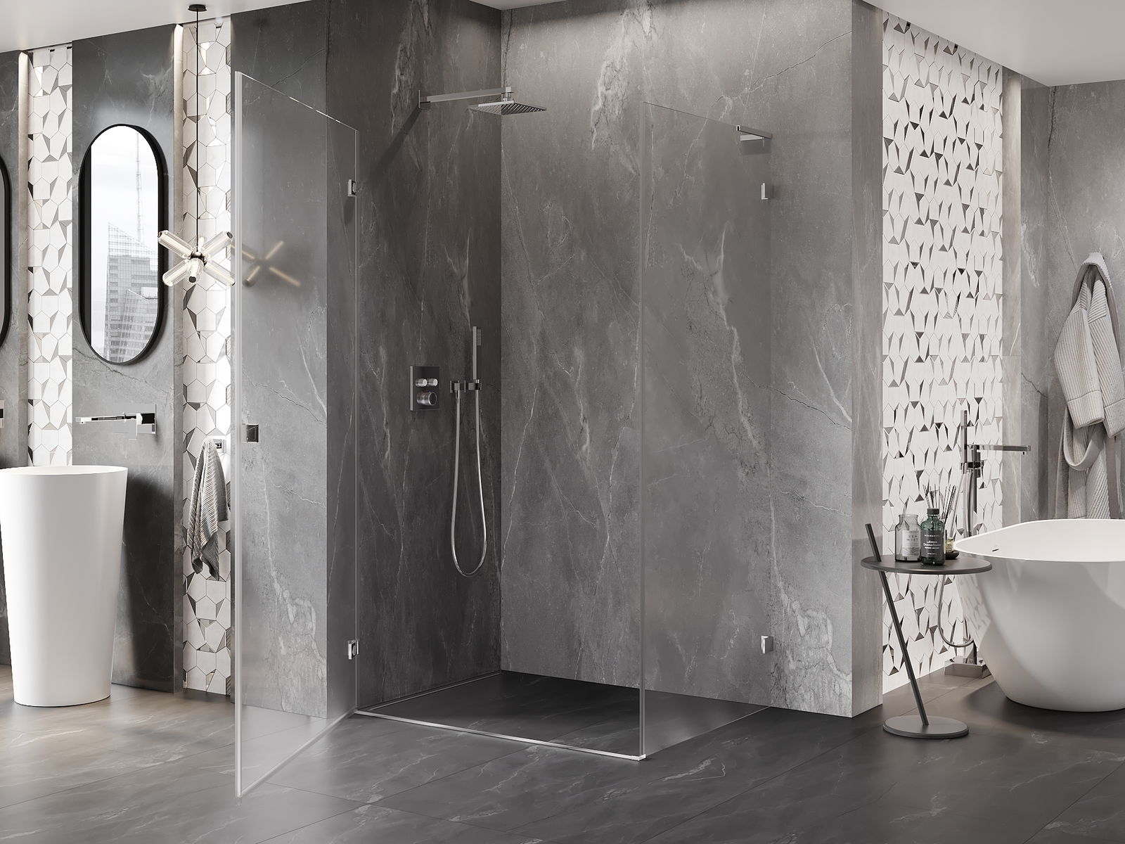 A terméket igény szerint felszerelheti akár a zuhanytálcára, akár közvetlenül a padlóra. Az univerzális szerelési mód lehetővé teszi a termék alkalmazkodását különböző típusú fürdőszobákhoz és térbeli konfigurációkhoz.