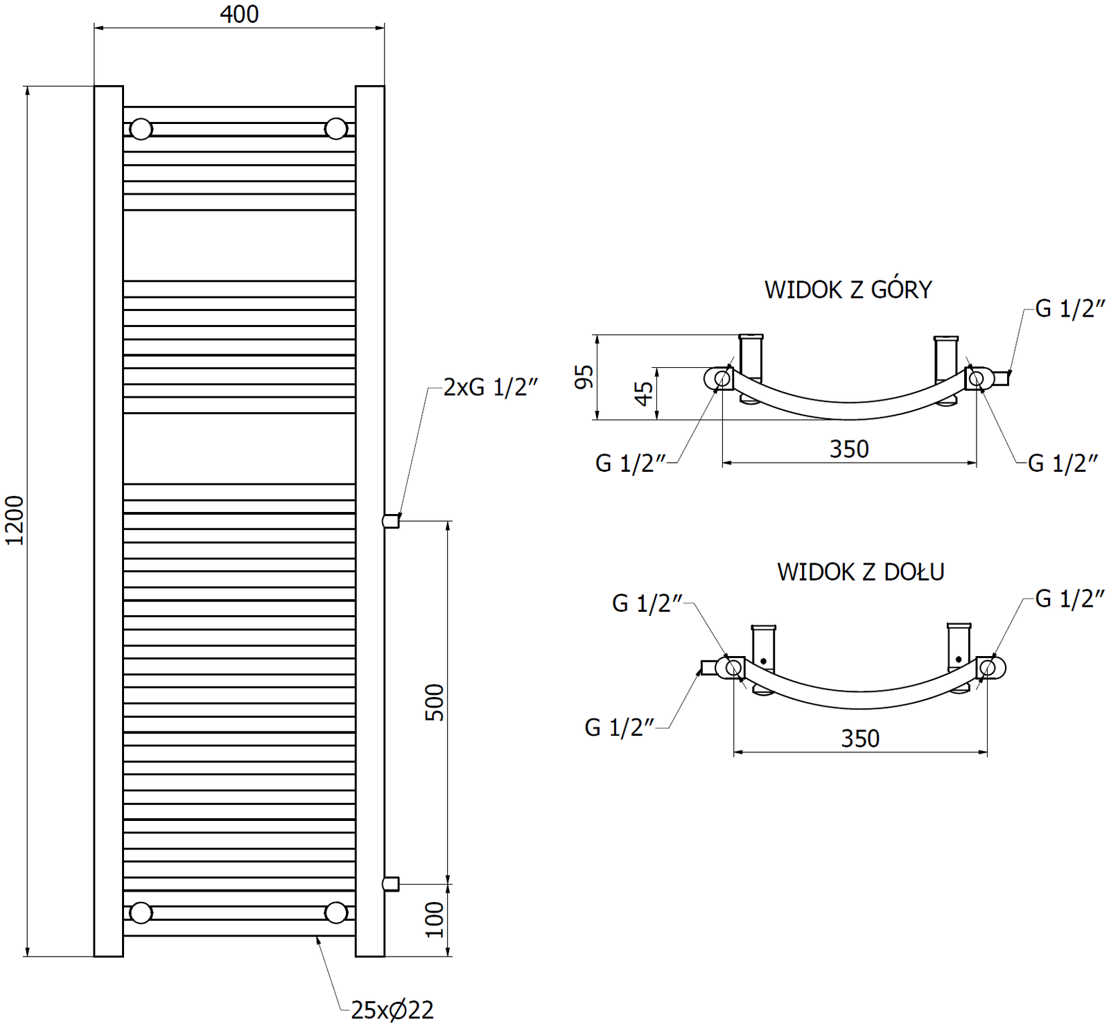 - 4xG ½″ felülről és alulról jobb vagy bal oldalról