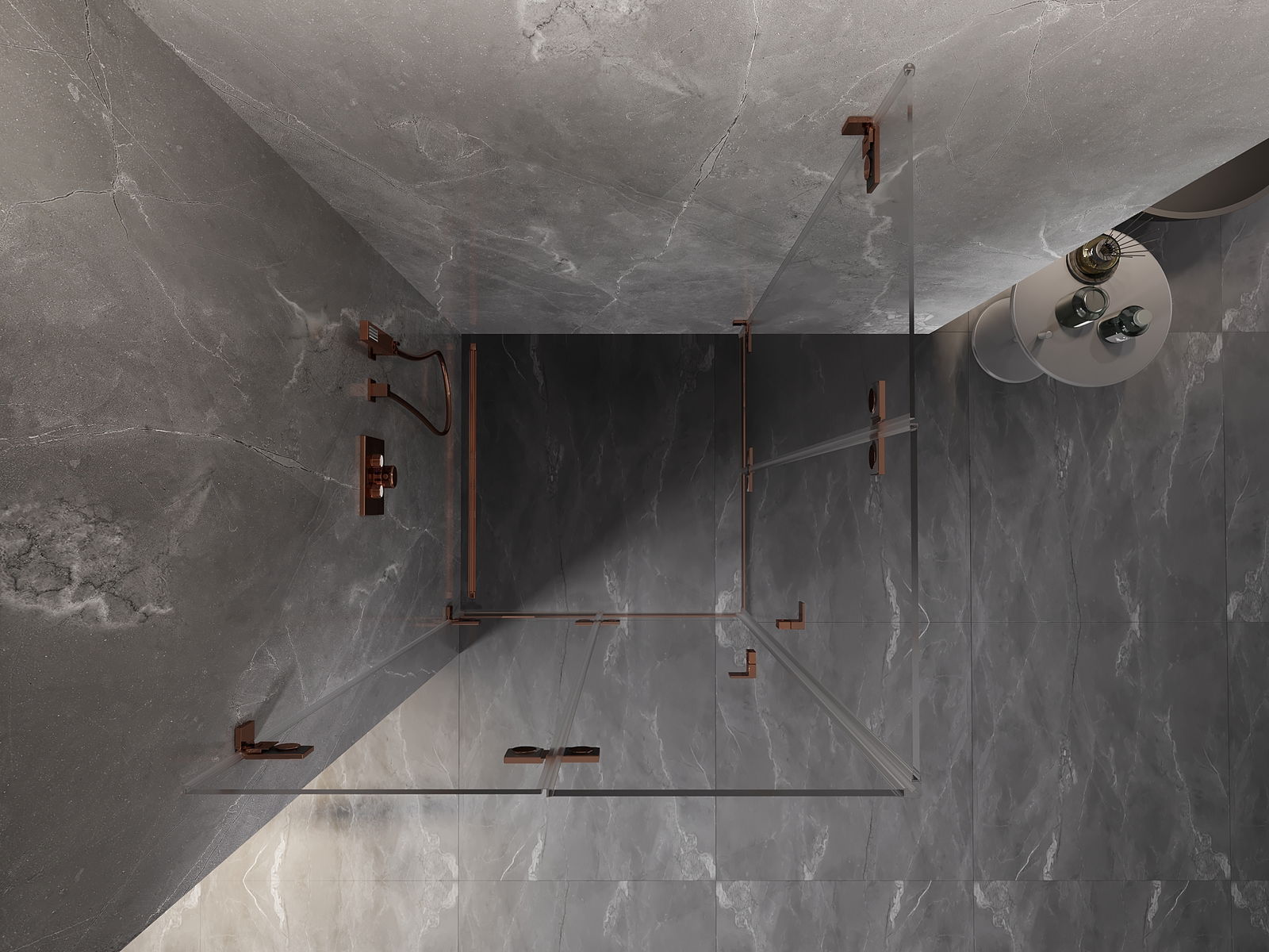 Mexen Lunar-F Duo összecsukható zuhanykabin 100 x 100 cm, átlátszó, rózsaszín arany - 836-100L-100P-60-00