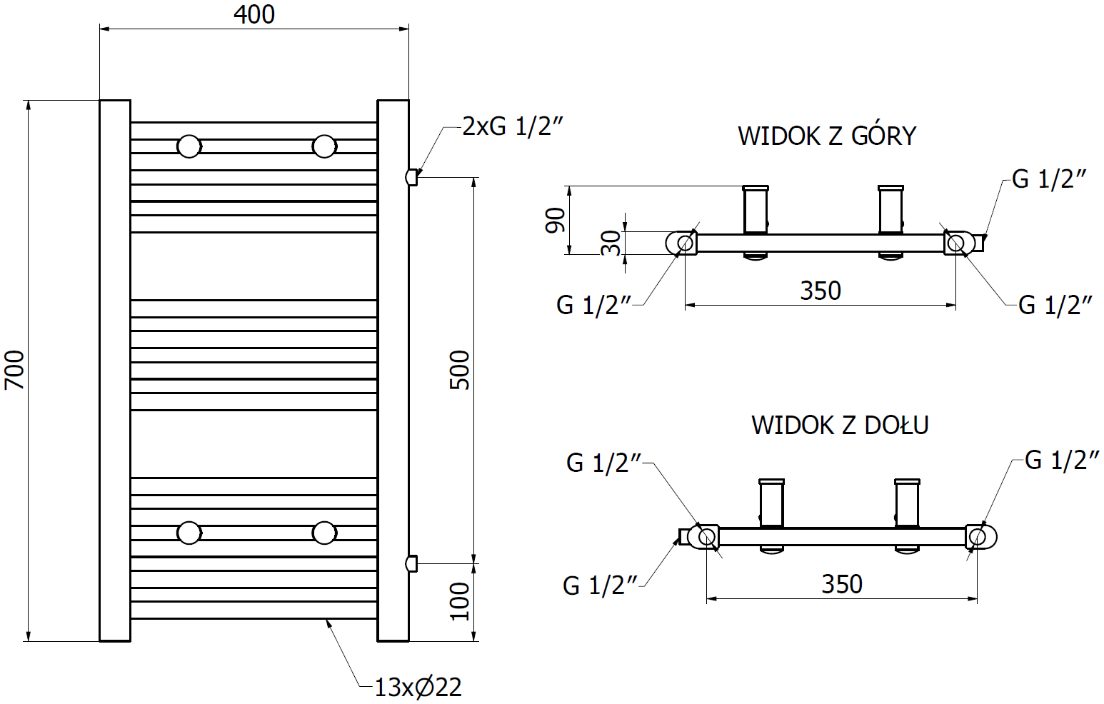 - 4xG ½″ felülről és alulról, jobb vagy bal oldalról