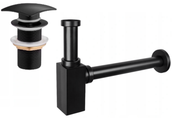 Mexen félszifon mosdóhoz, négyzet alakú, klikk-klakk dugóval, túlfolyó nélküli, fekete - 7991660-70