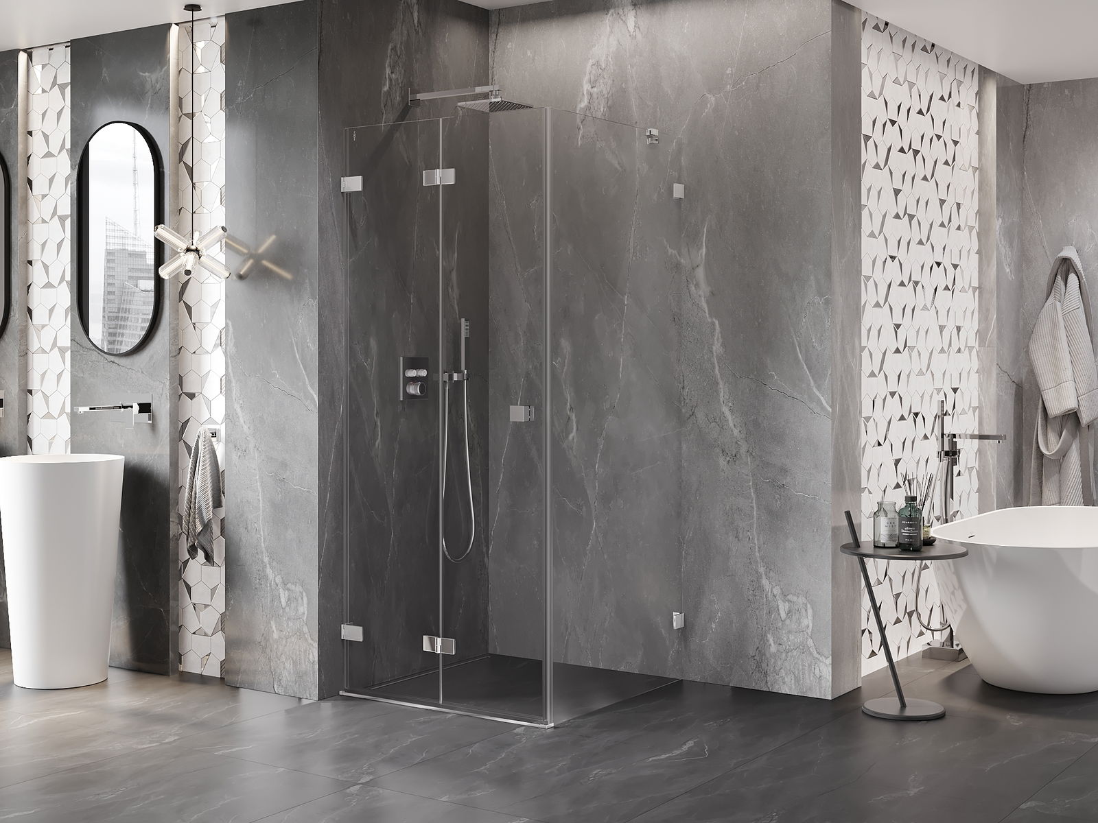 A terméket igény szerint felszerelheti akár a zuhanytálcára, akár közvetlenül a padlóra. Az univerzális szerelési mód lehetővé teszi a termék alkalmazkodását különböző típusú fürdőszobákhoz és térbeli konfigurációkhoz.