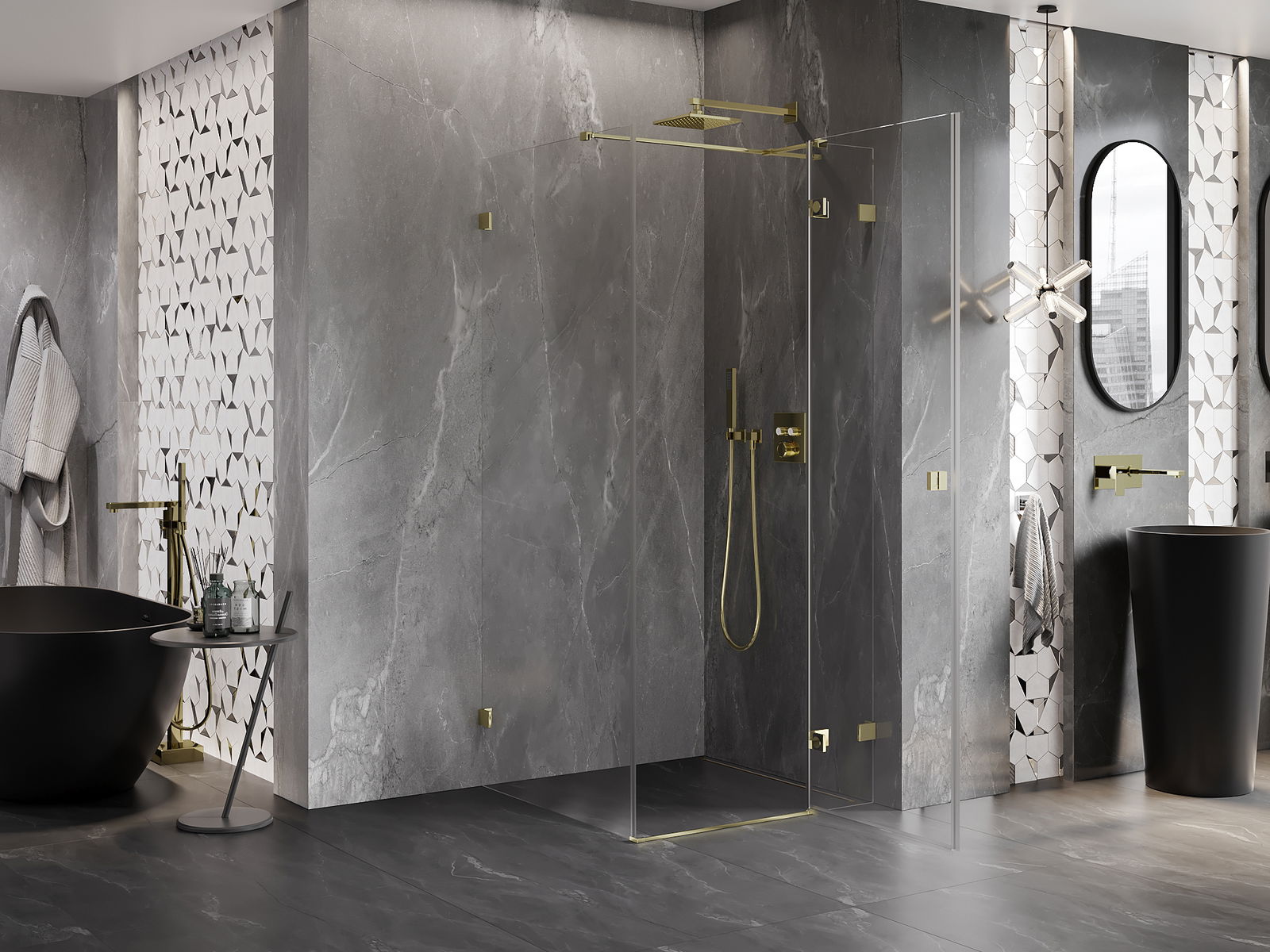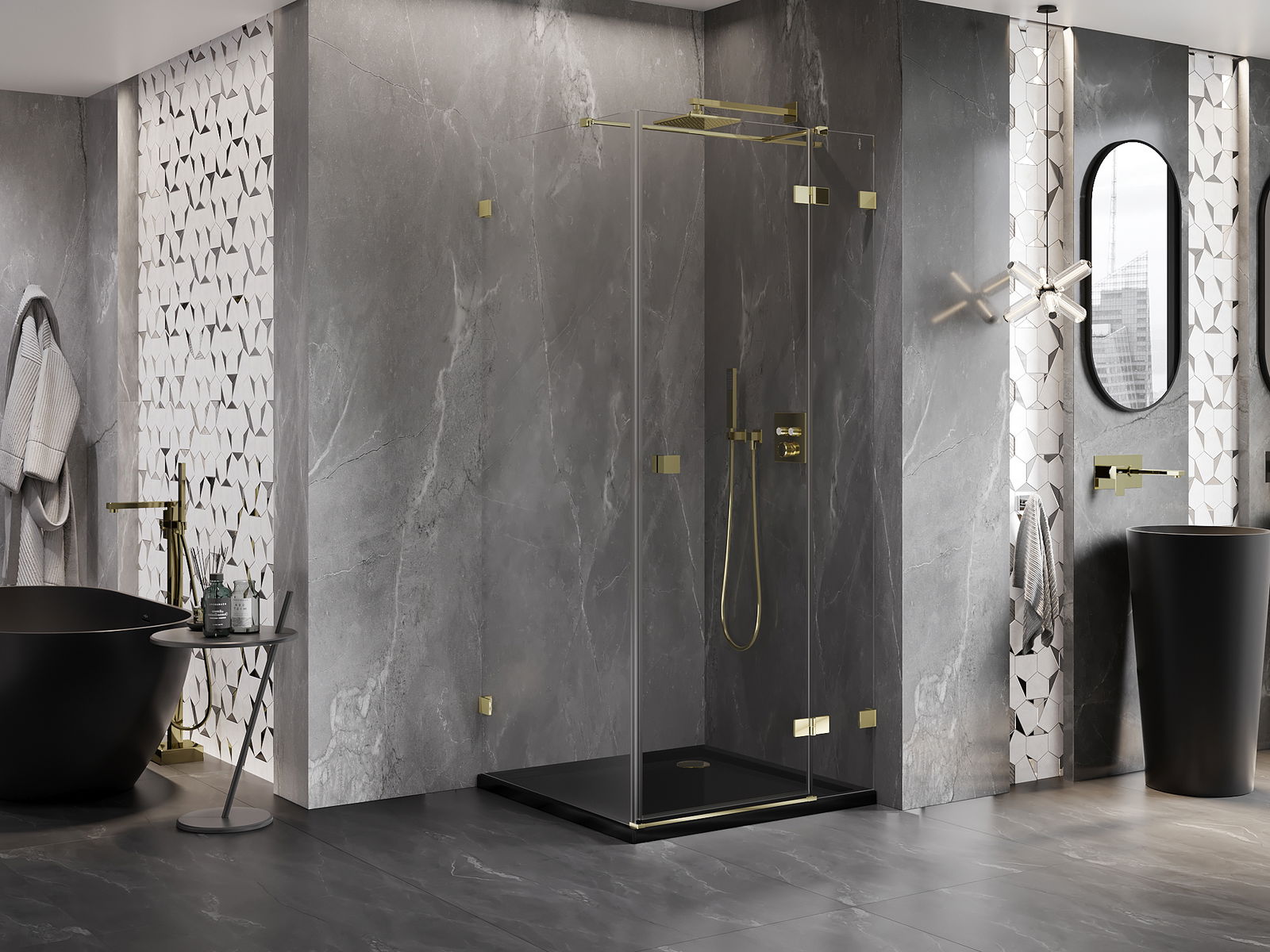 A praktikus és kényelmes fogantyú tartós és ellenálló fémből készült. A divatos forma a profilok színéhez igazított kivitelezéssel együtt modern és stílusos megjelenést kölcsönöz az egésznek, kiemelve minden fürdőszoba esztétikáját.