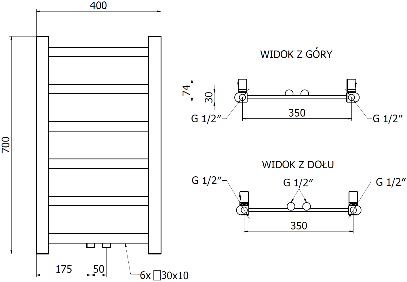 - 4xG ½″ felülről és alulról jobb vagy bal oldalon
