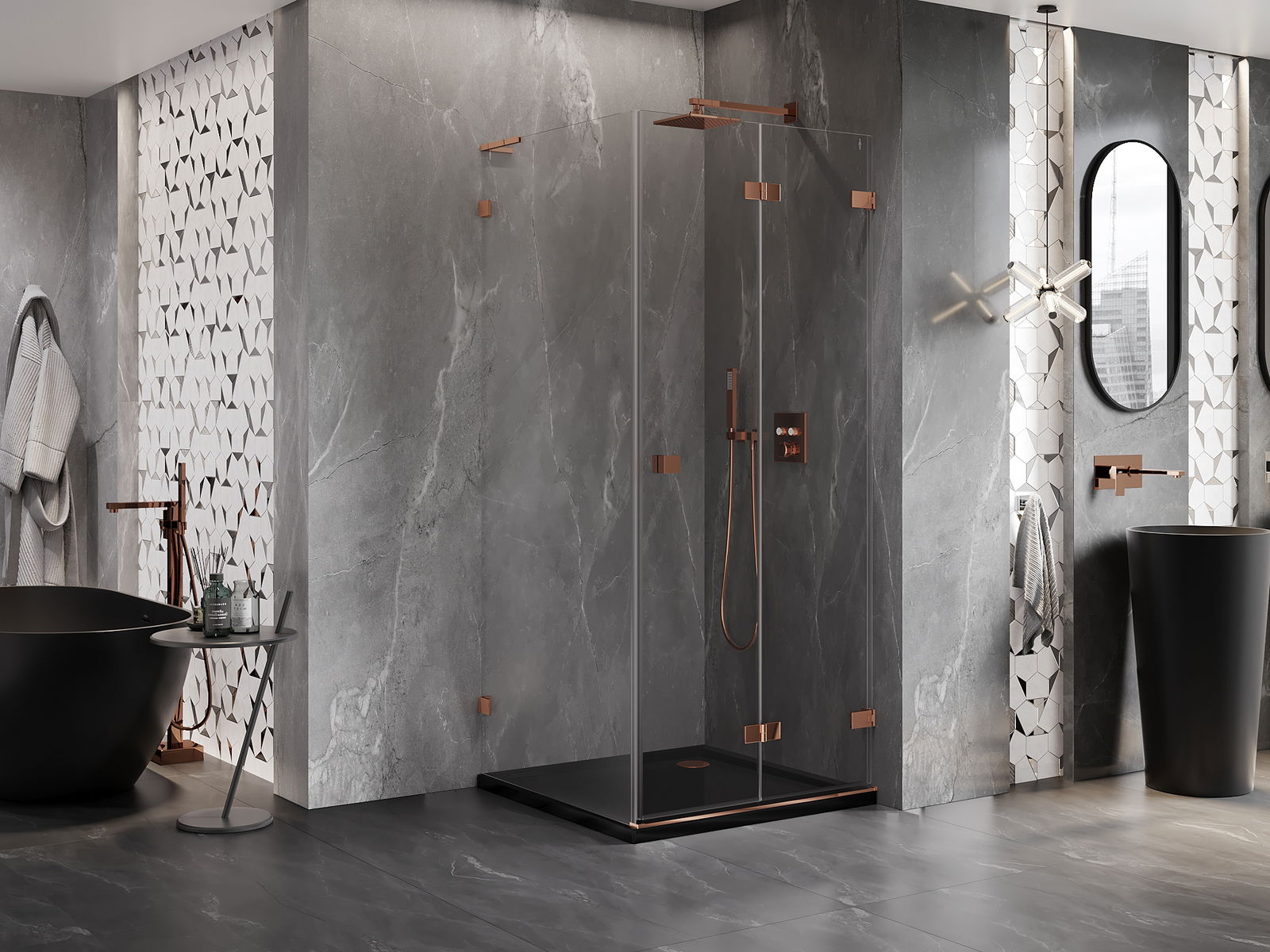 Mexen Lunar-F L összecsukható zuhanykabin jobb 70 x 70 cm, átlátszó, rózsaszín arany - 836L-070-070-60-00-P