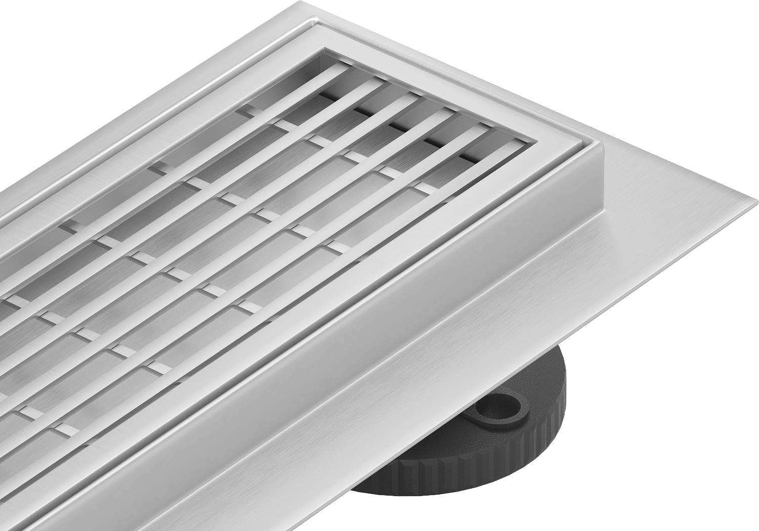 A lefolyó állítható lábakkal van felszerelve, amelyek lehetővé teszik a megfelelő lefolyó magasság és a szint egyenetlen felületén történő beállítását. Ilyen módon a csatorna még jobban megfelel egy adott fürdőszoba körülményeinek.