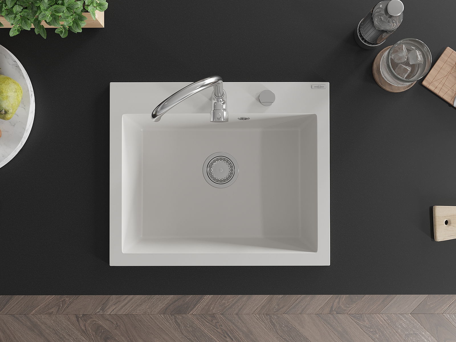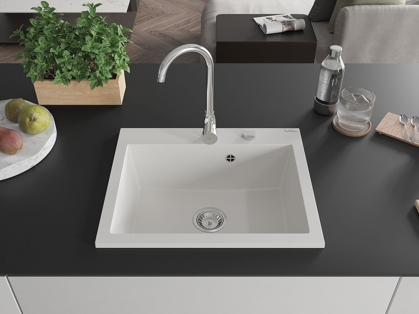 A mosogató magas minőségű gránitból készült. Elegáns, de mindenekelőtt praktikus kiegészítője minden konyhának, függetlenül annak stílusától. A gránit magas minősége és tartóssága hosszú távú használatot biztosít.