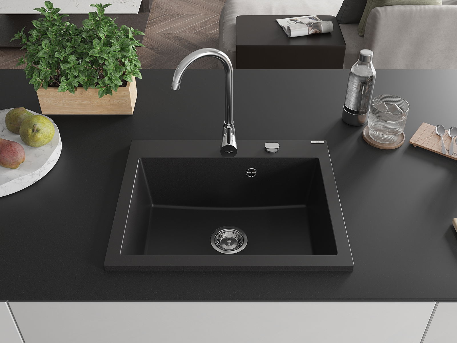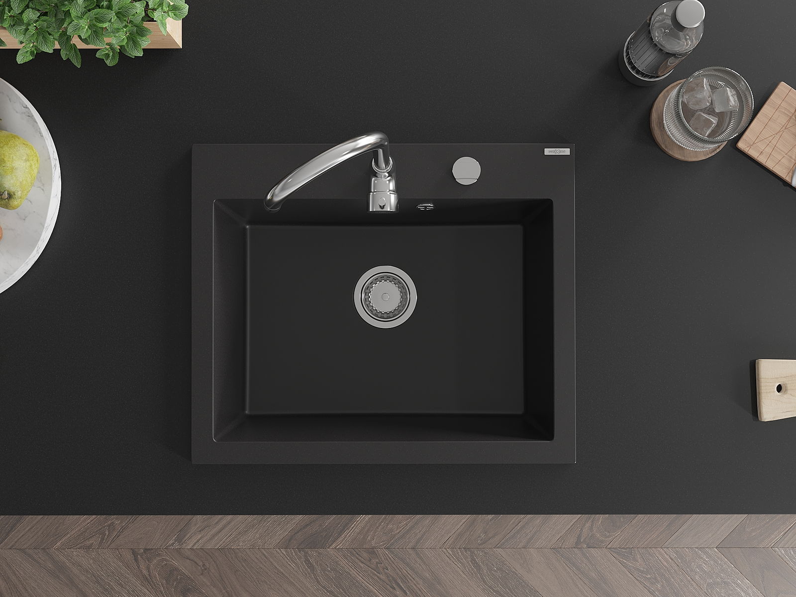 A mosogató magas minőségű gránitból készült. Elegáns, de mindenekelőtt praktikus kiegészítője minden konyhának, függetlenül annak stílusától. A gránit magas minősége és tartóssága hosszú távú használatot biztosít.