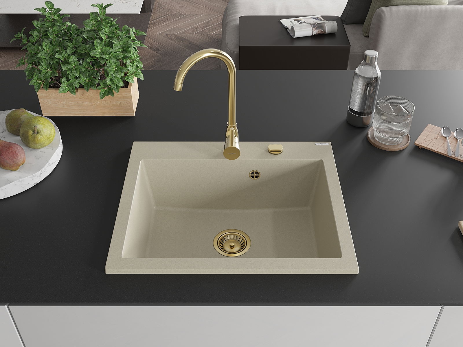 A mosogató magas minőségű gránitból készült. Elegáns, de mindenekelőtt praktikus kiegészítője minden konyhának, függetlenül annak stílusától. A gránit magas minősége és tartóssága hosszú távú használatot biztosít.