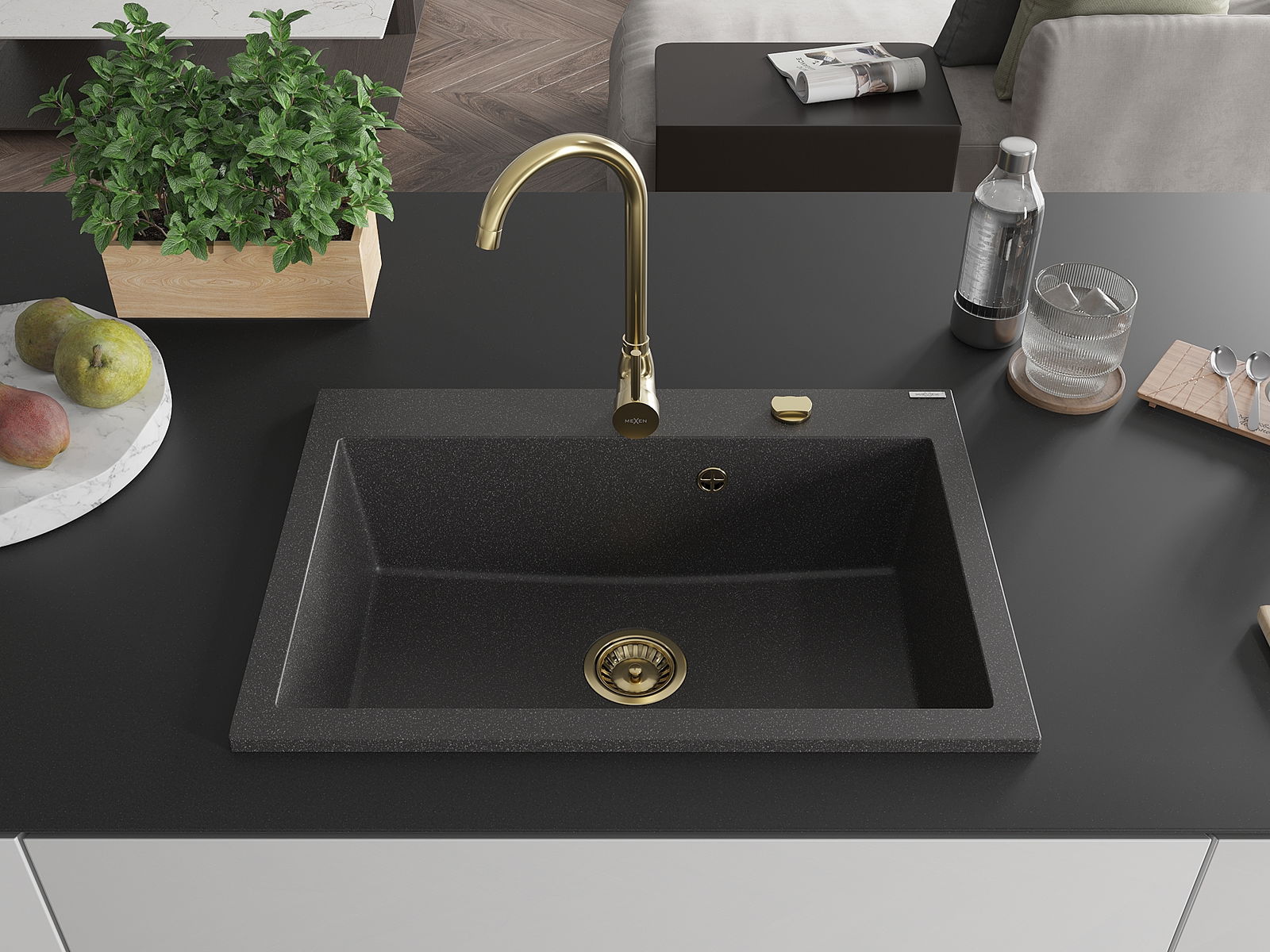 A mosogató magas minőségű gránitból készült. Elegáns, de mindenekelőtt praktikus kiegészítője minden konyhának, függetlenül annak stílusától. A gránit magas minősége és tartóssága hosszú távú használatot biztosít.