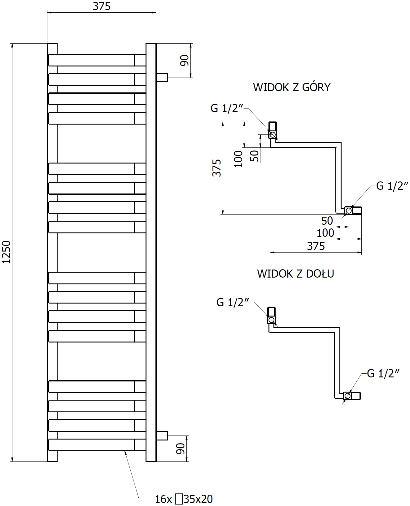 - 4xG ½″ felülről és alulról jobbról vagy balról