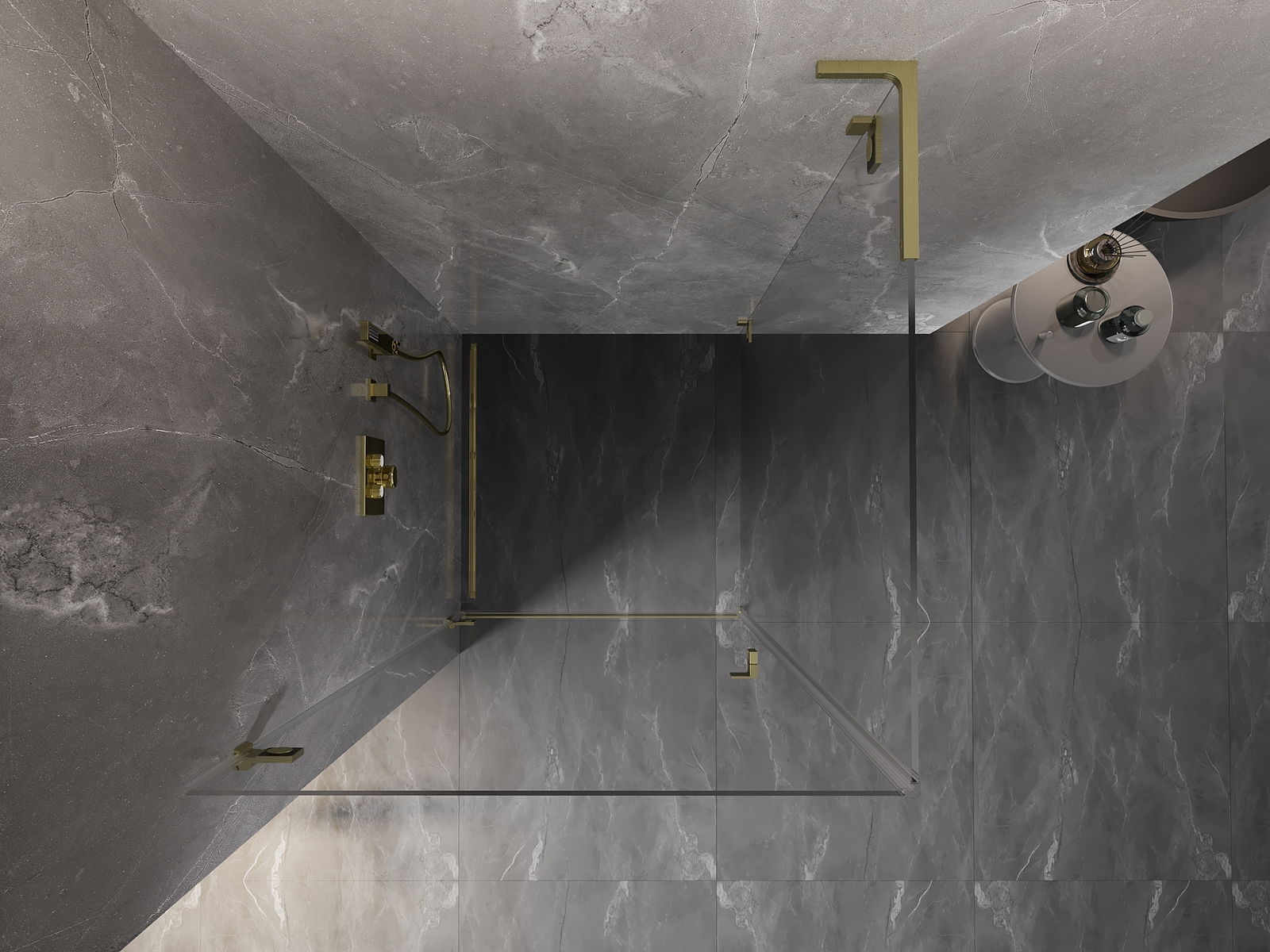 Mexen Lunar-B L zuhanykabin balos, nyíló, 90 x 90 cm, átlátszó, arany szálcsiszolt - 832L-090-090-55-00-L