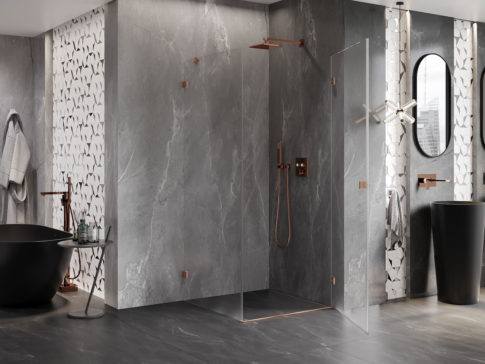 A kapcsok nagyon tartós rézből készültek, ráadásul egy síkba hozott üveglapot alkotnak. Kitűnő választás, amely ötvözi az eleganciát, a tartósságot és a modern dizájnt. Az ilyen megoldásoknak köszönhetően a zuhany megjelenése esztétikusabb, és egyúttal megkönnyíti a tisztán tartást.