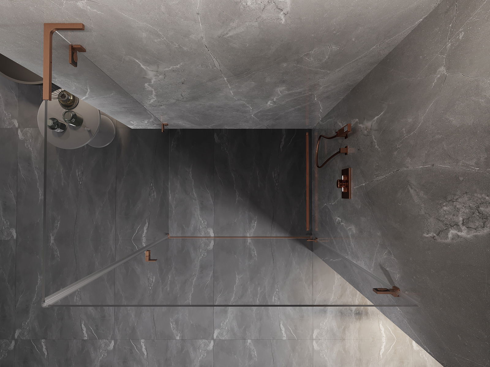 Mexen Lunar-B L jobbos nyíló zuhanykabin 80 x 70 cm, átlátszó, szálcsiszolt réz - 832L-080-070-65-00-P