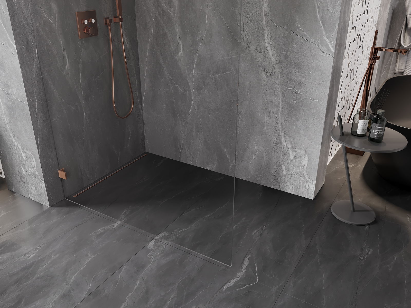 Mexen Lunar zuhanyfal Walk-in bal 90 x 200 cm, átlátszó 8 mm, csiszolt réz - 830-090-000-65-00-L