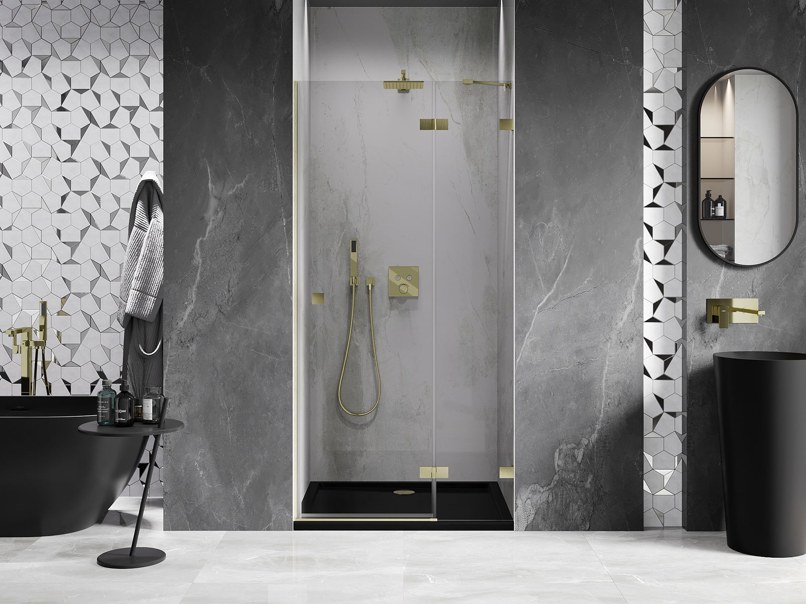 Mexen Lunar jobbos nyíló zuhanyajtó 105 cm, átlátszó, arany szálcsiszolt - 834-105-000-55-00-P