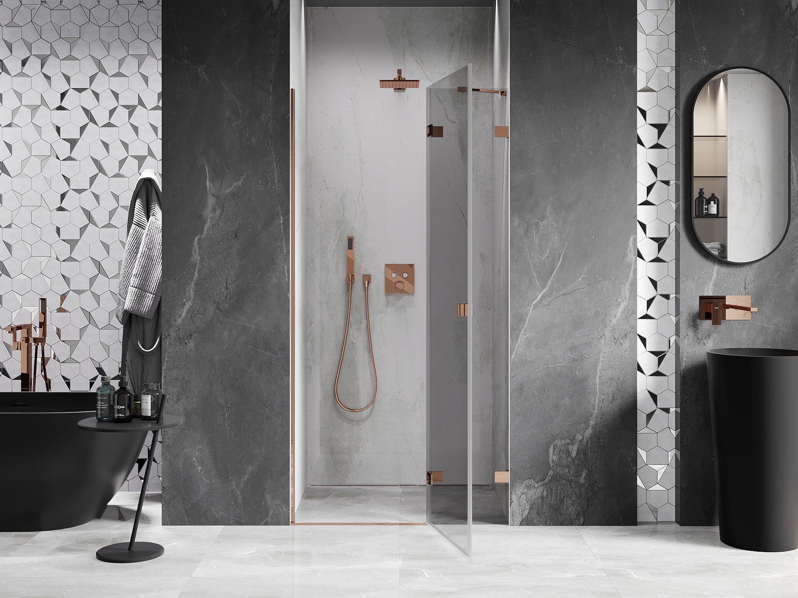 Mexen Lunar zuhanyajtó jobbos nyíló 100 cm, átlátszó, rózsaarany - 834-100-000-60-00-P