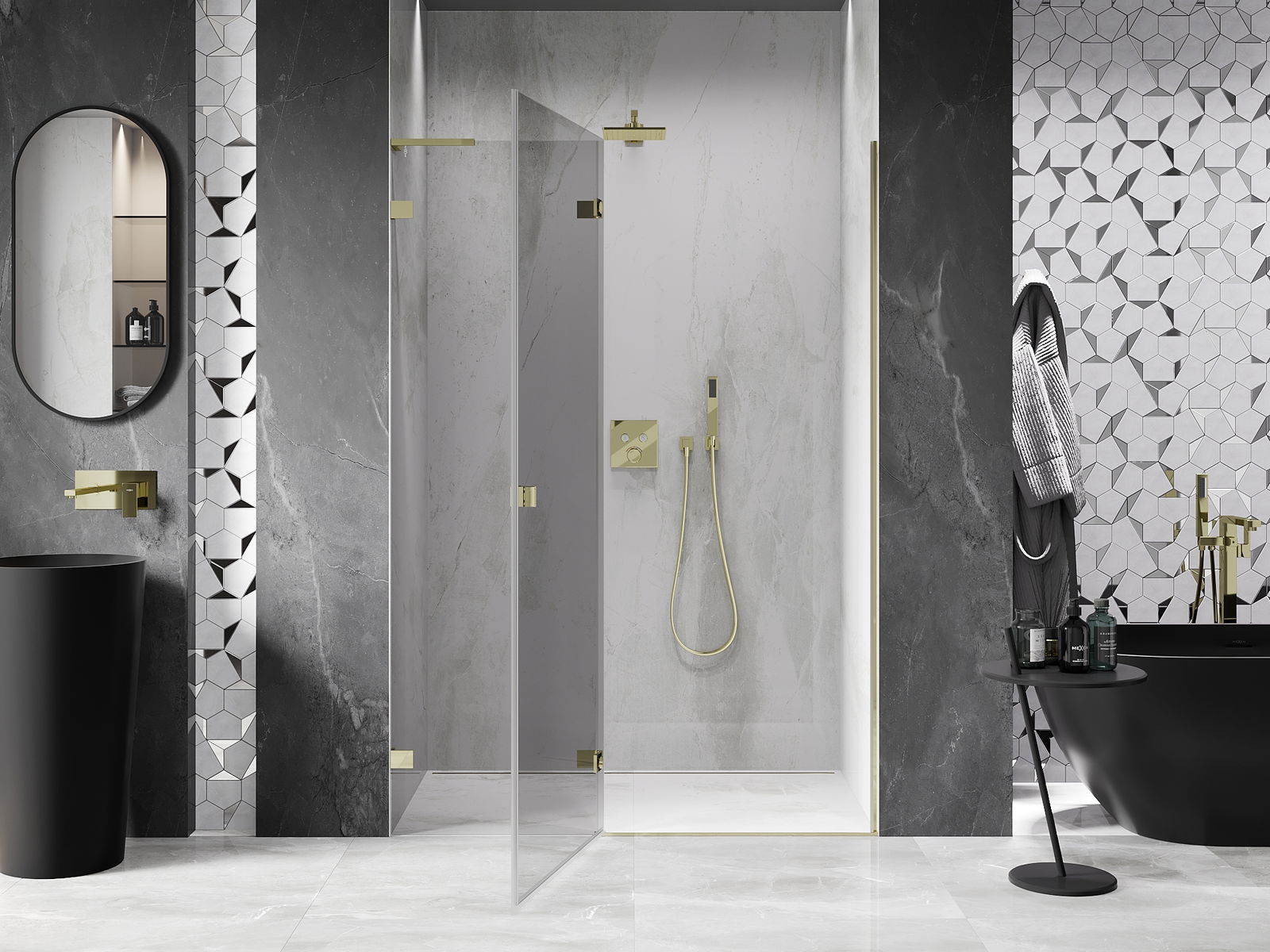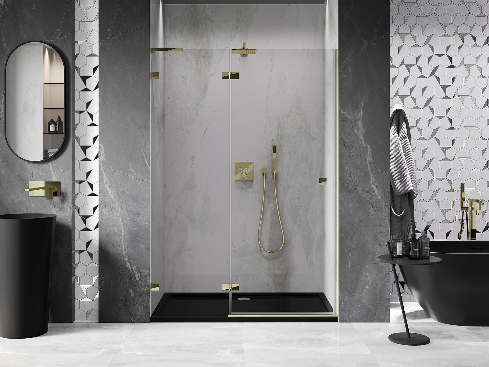 A terméket igény szerint felszerelheti akár a zuhanytálcára, akár közvetlenül a padlóra. Az univerzális szerelési mód lehetővé teszi a termék alkalmazkodását különböző típusú fürdőszobákhoz és térbeli konfigurációkhoz.