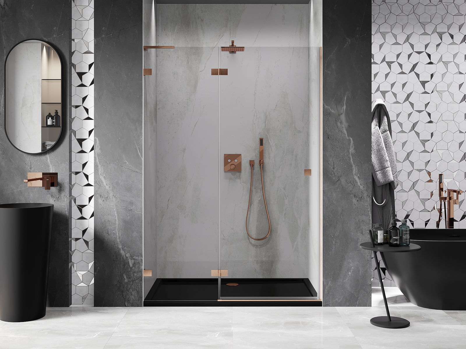 Mexen Lunar L balra nyíló zuhanyajtó 135 cm, átlátszó, csiszolt réz - 834L-135-000-65-00-L