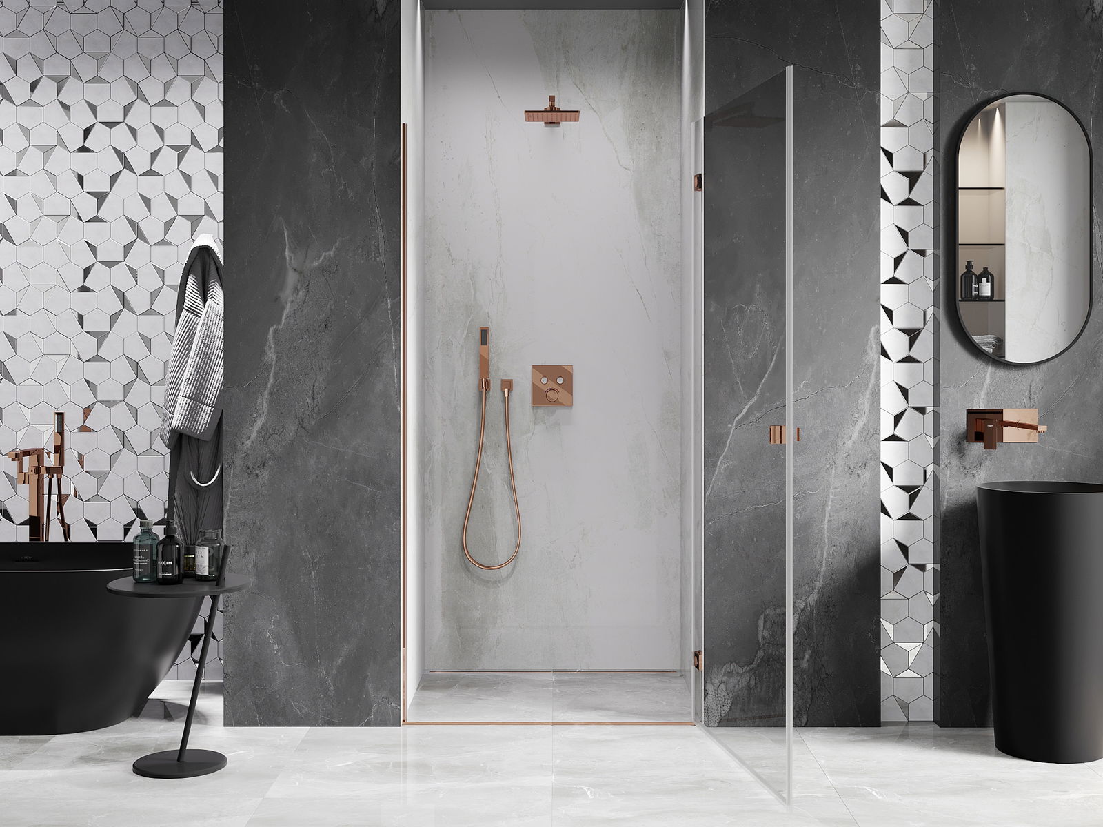 A kapcsok nagyon tartós rézből készültek, ráadásul egy síkba hozott üveglapot alkotnak. Kitűnő választás, amely ötvözi az eleganciát, a tartósságot és a modern dizájnt. Az ilyen megoldásoknak köszönhetően a zuhany megjelenése esztétikusabb, és egyúttal megkönnyíti a tisztán tartást.