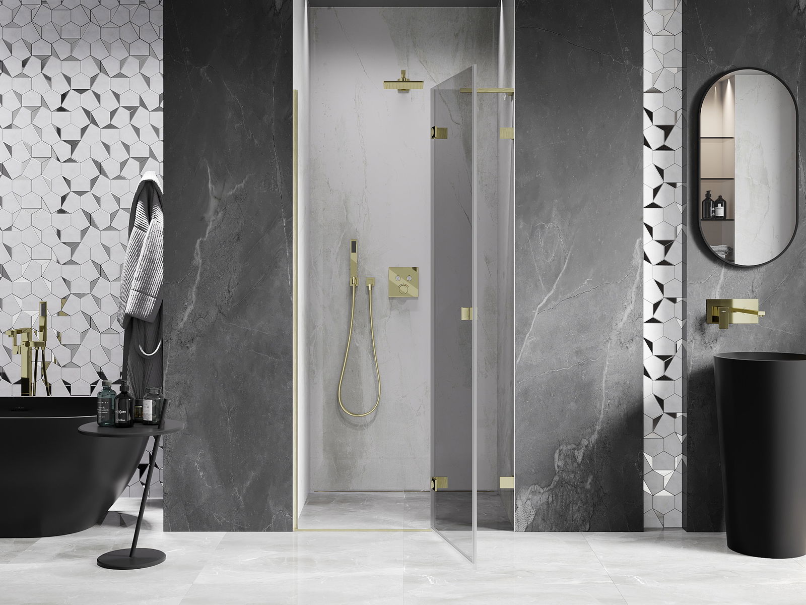 Mexen Lunar L jobbos zuhanyajtó, 70 cm, átlátszó, selyemfényű arany - 834L-070-000-55-00-P