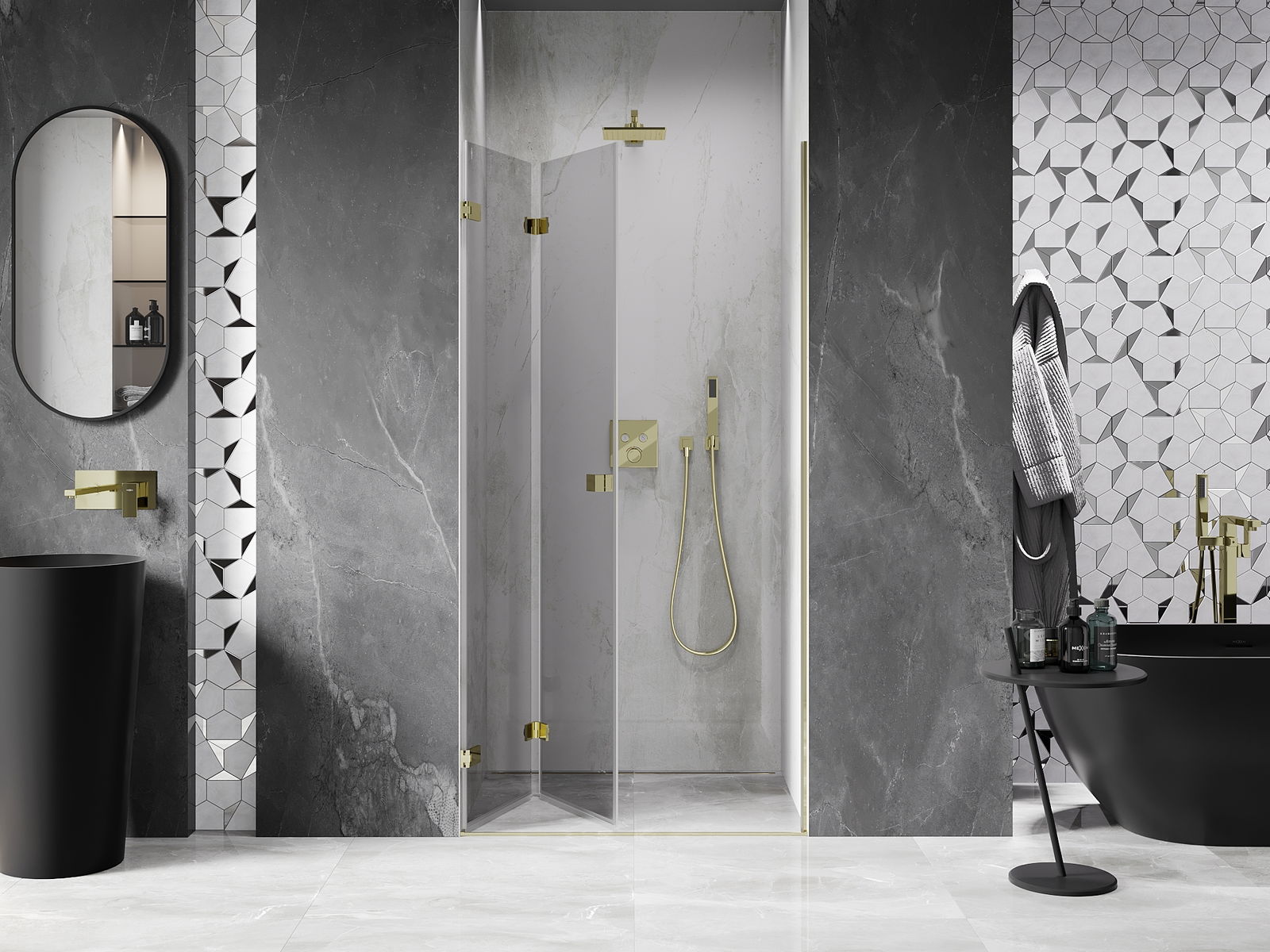 Mexen Lunar-F 90 cm-es balra nyíló összecsukható zuhanyajtó, áttetsző, arany - 836-090-000-50-00-L