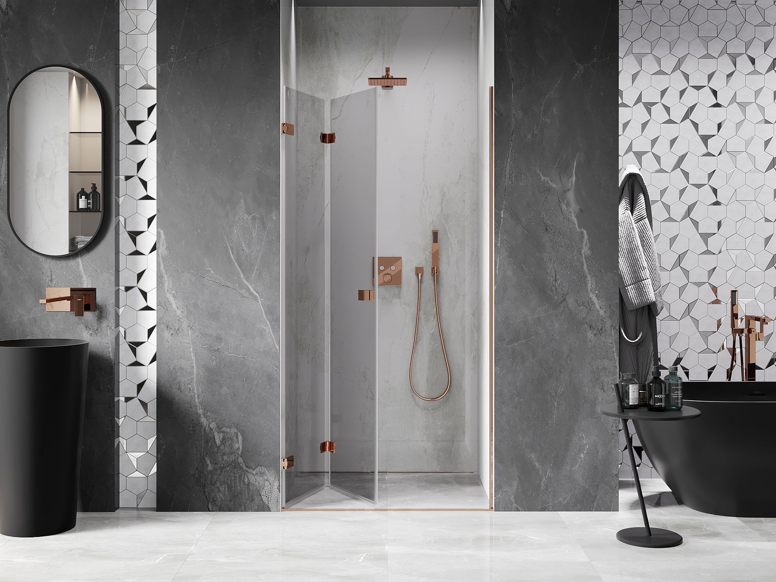 Mexen Lunar-F zuhanyajtók, balra nyíló, 80 cm, átlátszó, rózsaarany - 836-080-000-60-00-L