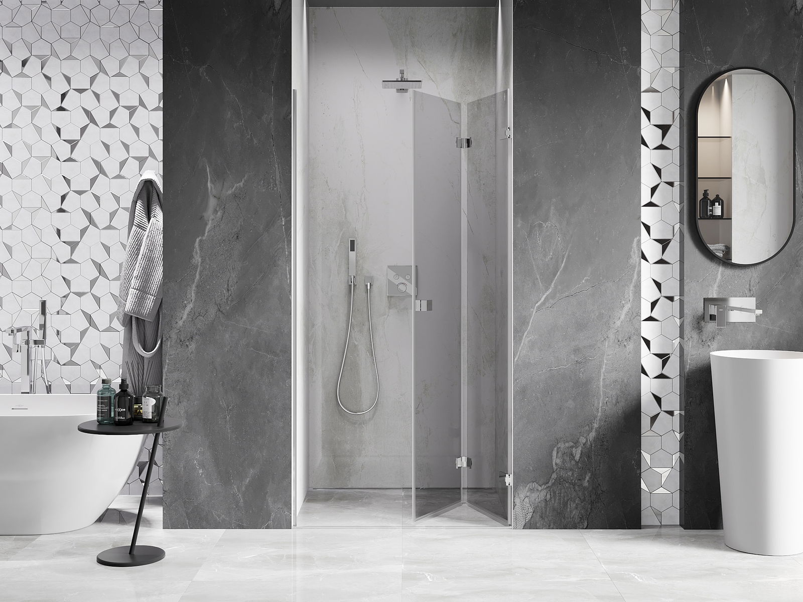 Az ajtók kifelé és befelé történő hajtogatásának lehetősége több teret biztosít, amikor nem használjuk a zuhanyzót. Ez ideális megoldás kisebb fürdőszobákhoz, maximálisan kihasználva a rendelkezésre álló területet.