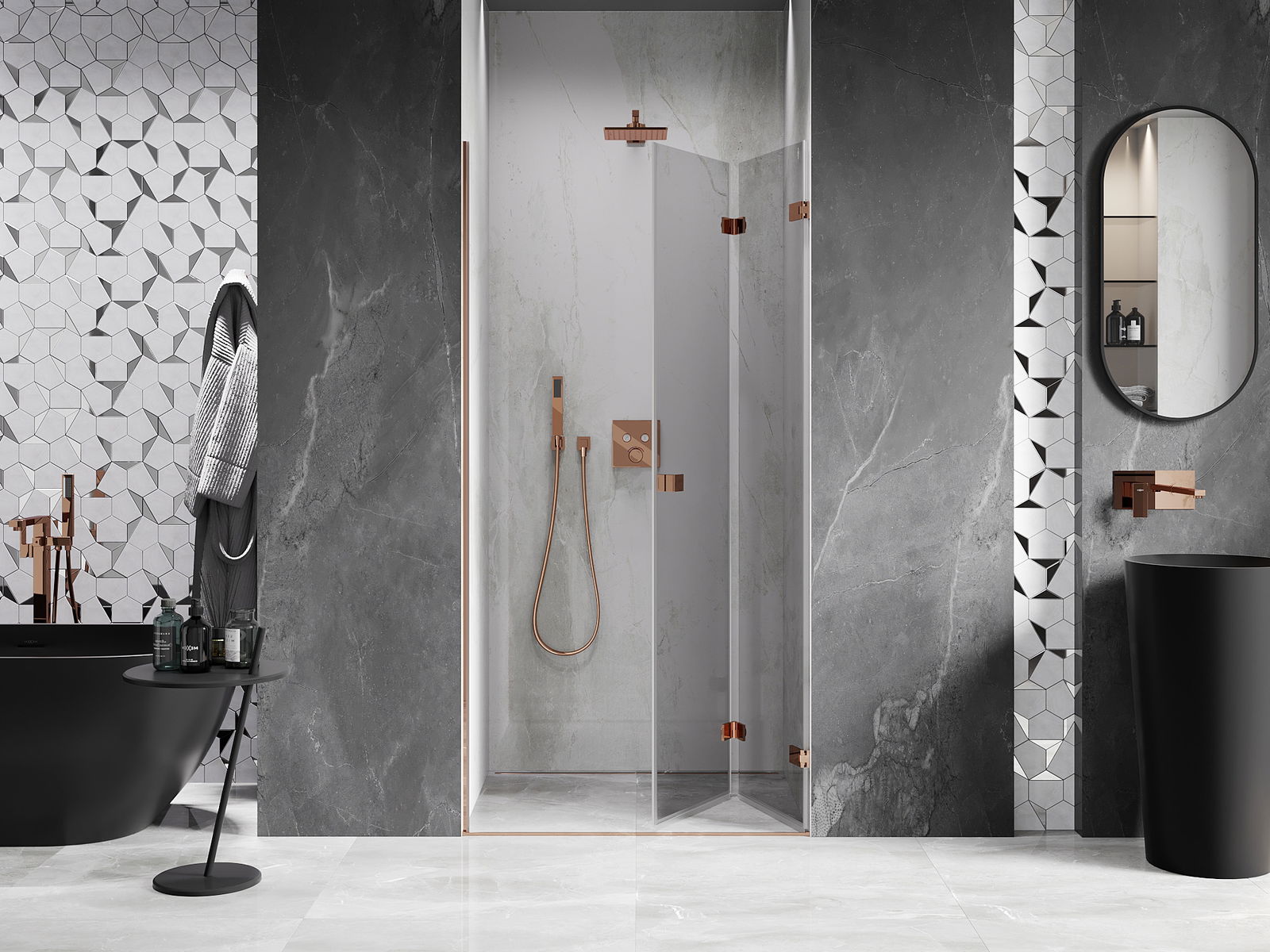 Mexen Lunar-F összecsukható zuhanyajtó jobb 80 cm, átlátszó, rózsaarany - 836-080-000-60-00-P