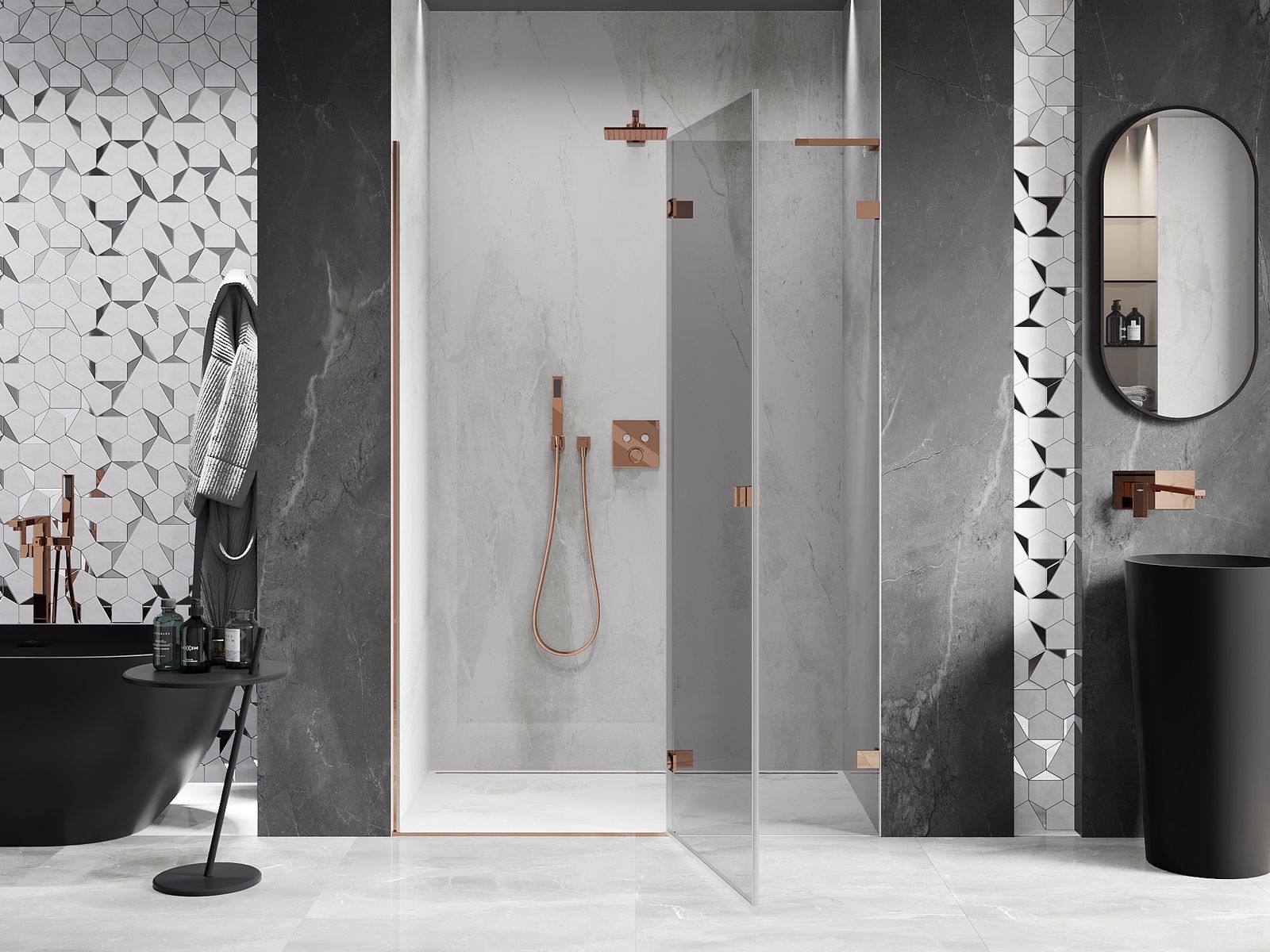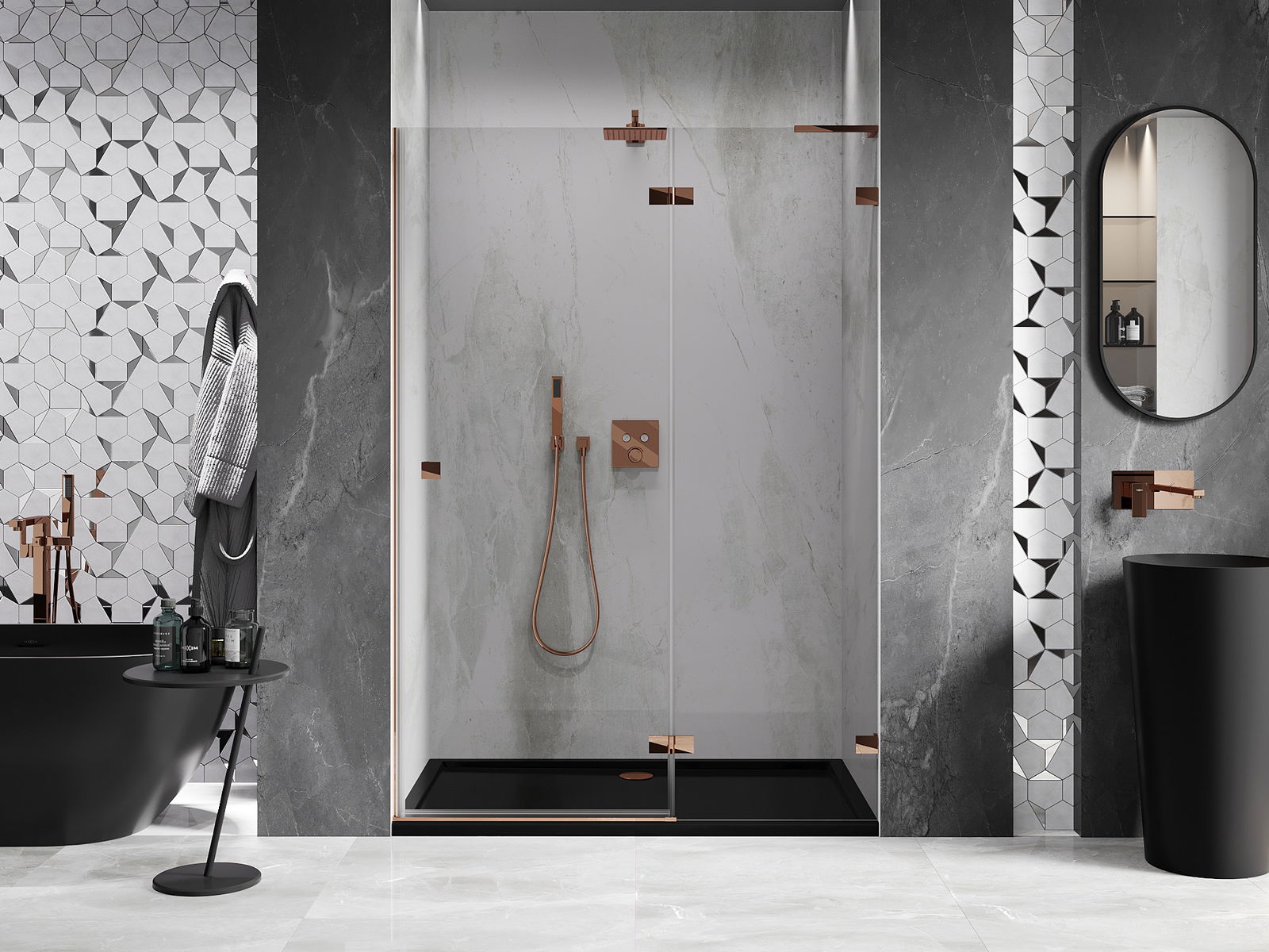 Mexen Lunar L jobbos nyitható zuhanyajtó 140 cm, átlátszó, rózsaarany - 834L-140-000-60-00-P