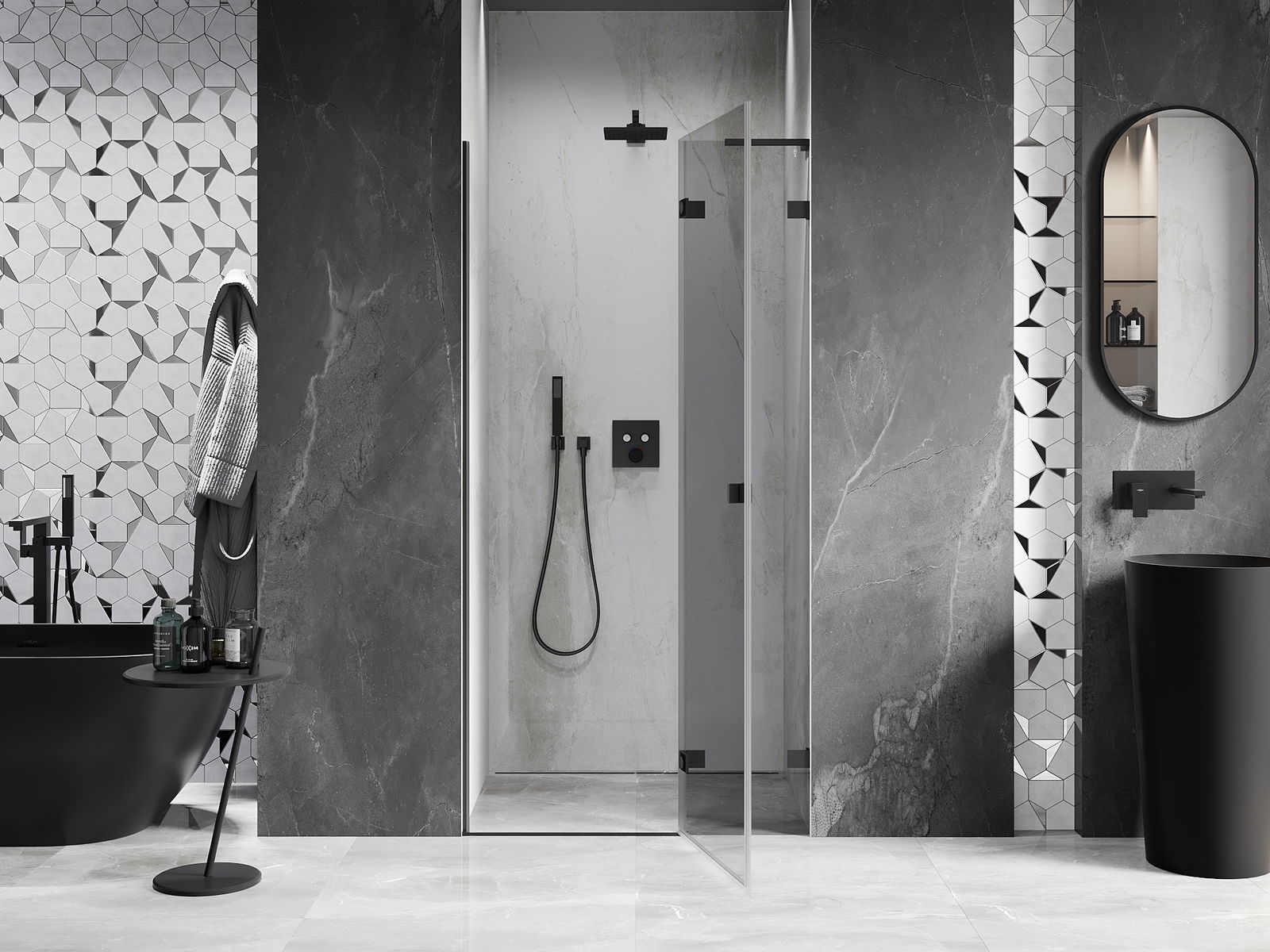 Mexen Lunar L jobbos nyíló zuhanyajtó 85 cm, átlátszó, fekete - 834L-085-000-70-00-P