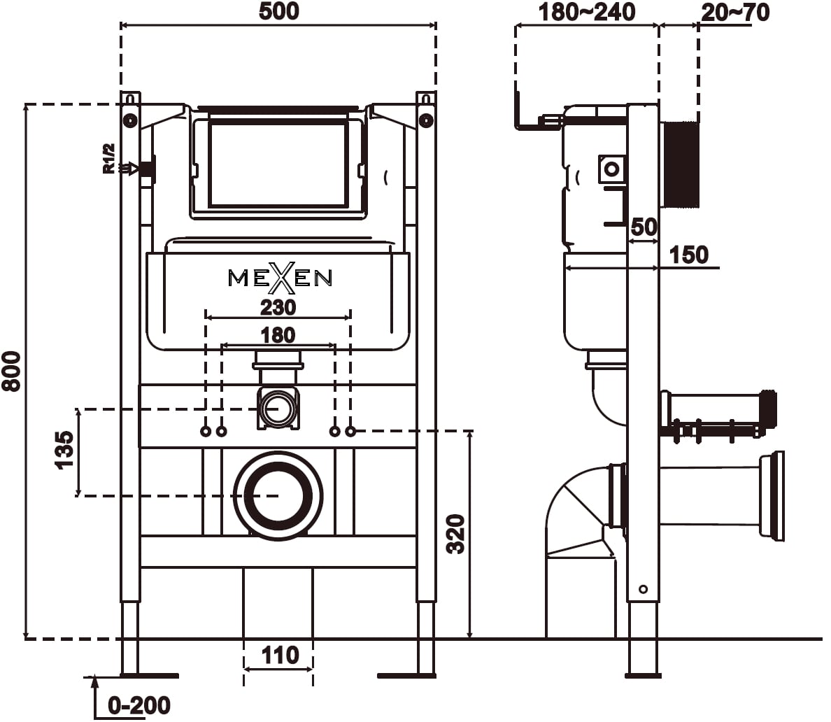 Mexen Tex Air XS-F pneumatikus falsík alatti WC szerelési keret - 61800A