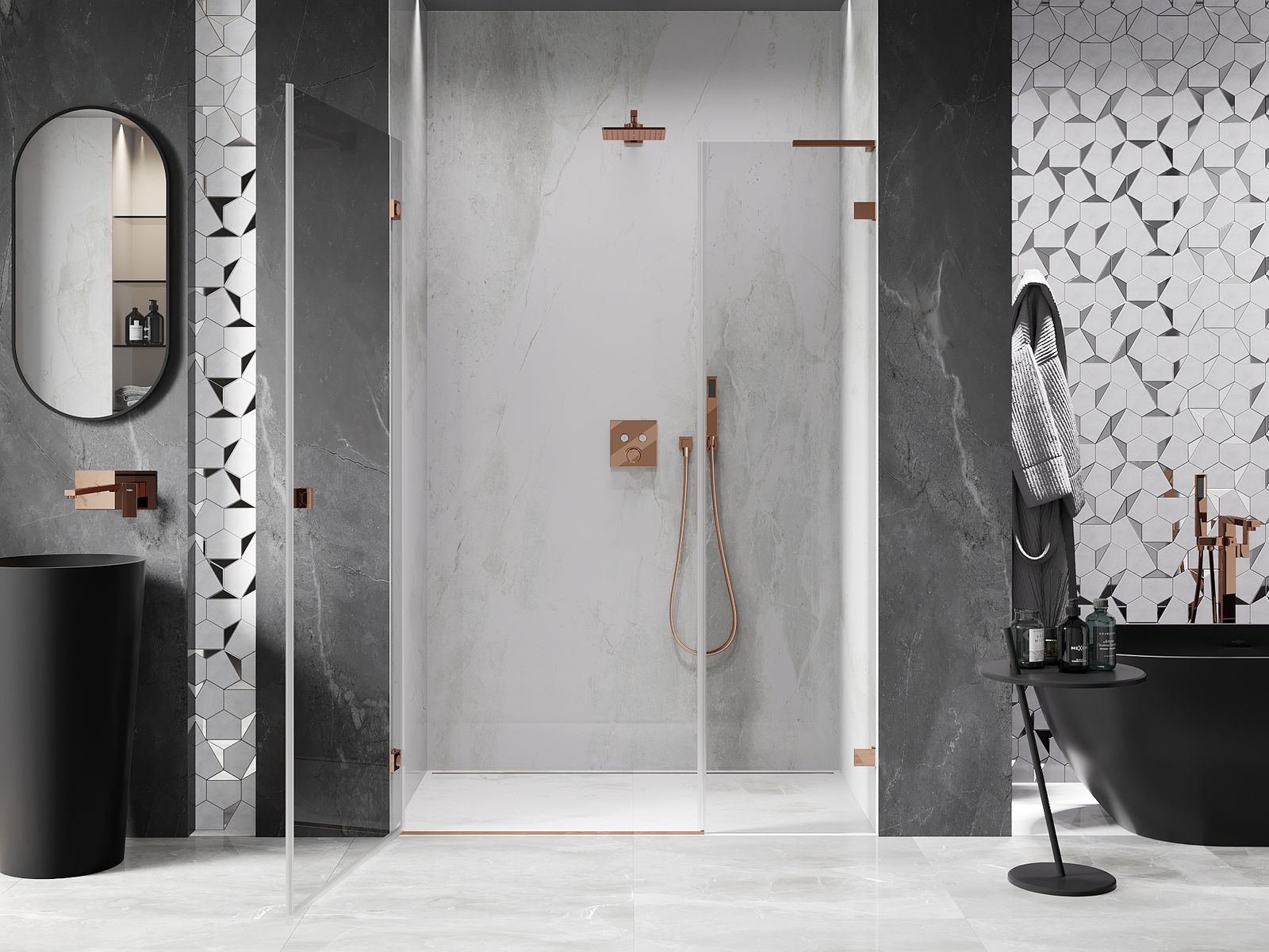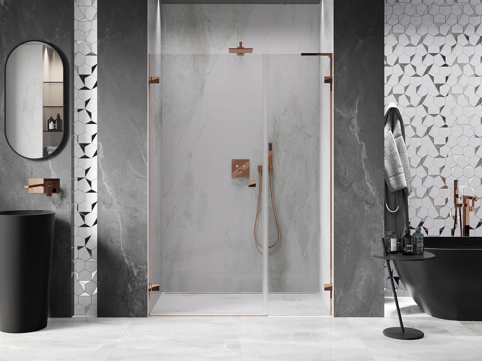 Mexen Lunar-B L zuhanyajtó balra nyitható 125 cm, átlátszó, rózsaarany - 832SL-125-050-60-00-L