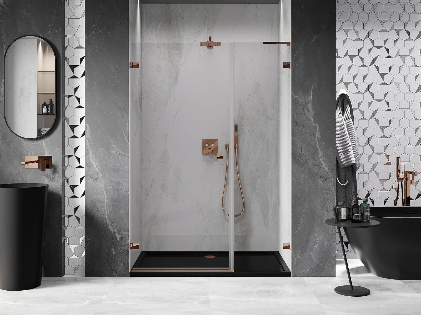 Mexen Lunar-B L balos zuhanyajtó, bal oldali 150 cm, átlátszó, rózsaarany - 832SL-150-050-60-00-L