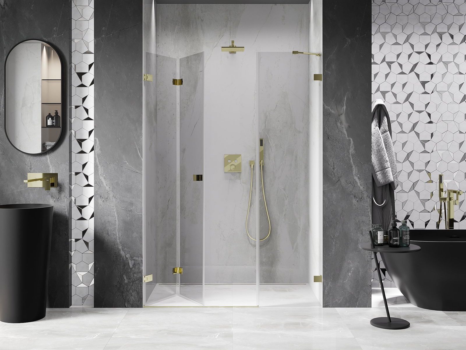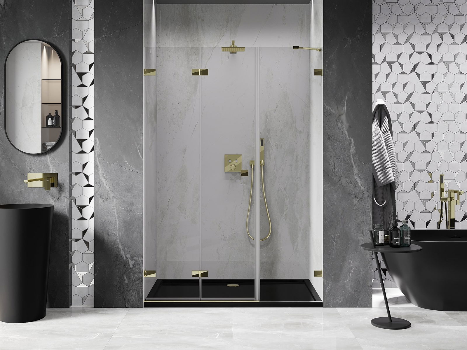 Mexen Lunar-F összecsukható zuhanyajtó bal 120 cm, átlátszó, arany - 836S-120-050-50-00-L