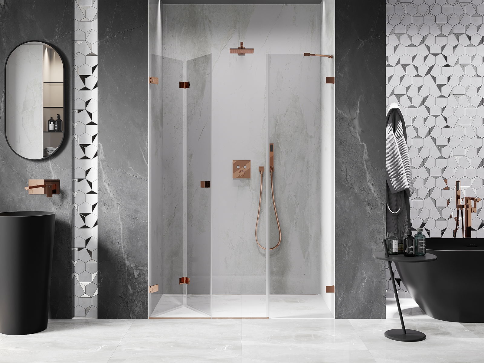 Mexen Lunar-F összecsukható bal zuhanyajtó 110 cm, átlátszó, rózsaarany - 836S-110-050-60-00-L