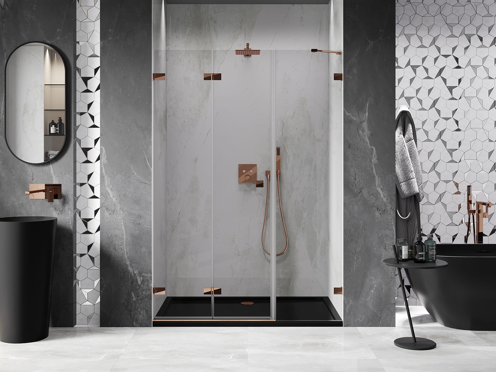 Mexen Lunar-F összecsukható zuhanyajtó bal 150 cm, átlátszó, rózsaarany - 836S-150-050-60-00-L