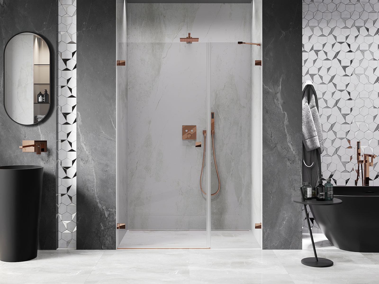 Mexen Lunar-B bal oldali zuhanyajtó 120 cm, átlátszó, rózsaarany - 832S-120-050-60-00-L