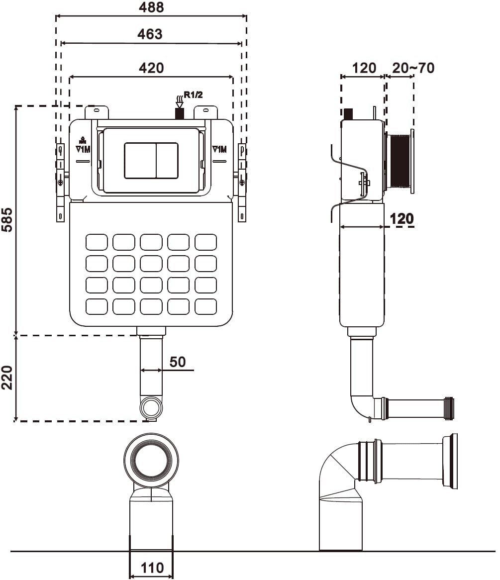 A Mexen Tex Air S egy pneumatikus WC-hez tervezett beépített keret, amely sokoldalúságával tűnik ki, mivel teljes falba vagy gipszkarton falba is szerelhető. Kompakt méretei: 79 cm magasság, 48 cm szélesség és 12 cm vastagság megkönnyítik a telepítést. A pneumatikus öblítési mechanizmus és az öblített vízmennyiség állítási lehetősége (3/6 L, 4/7 L, 4,5/9 L) kényelmes használatot biztosítanak. A horganyzott merevítők és a párakicsapódás elleni szigeteléssel ellátott tartály biztosítják a tartósságot. A Mexen Tex Air S keret tökéletesen együttműködik a Tex sorozat nyomógombjaival.