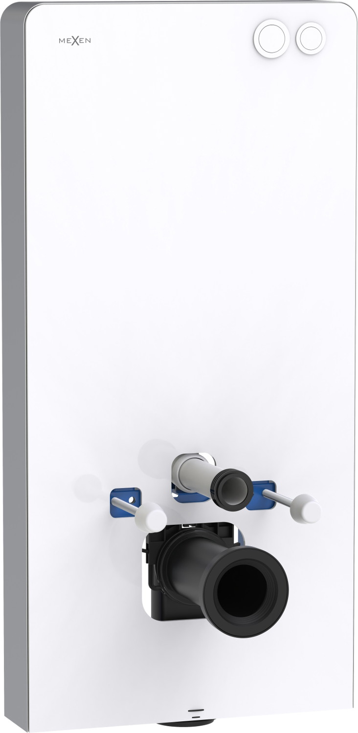 A Mexen Tex Air G egy modern falon kívüli WC szerkezet, amely az esztétikát és a funkcionalitást ötvözi. 103 cm magas, 50 cm széles és 12 cm vastag, így különféle terekbe illeszkedik. Elülső burkolata edzett üveg, oldalsó burkolata pedig kefélt alumínium, ami eleganciát kölcsönöz. A beépített öblítőgomb és a pneumatikus öblítőrendszer kényelmet biztosít. Kompatibilis lógó és álló WC csészékkel, és lehetővé teszi a vízmennyiség beállítását: 3/6 L.
