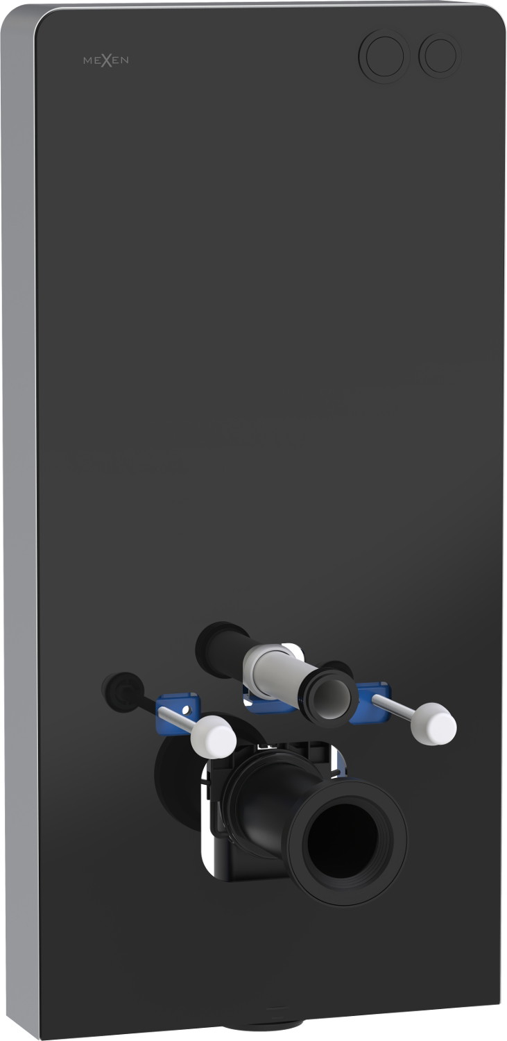 A Mexen Tex Air G egy elegáns falon kívüli szerkezet, amely különleges dizájnnal bír, ideális modern belső terekbe. A fekete színű edzett üveg előlapi burkolatának és az oldalán lévő csiszolt alumíniumnak köszönhetően ez a keret tökéletesen illeszkedik a különféle stílusú fürdőszobákhoz. A 103 cm magas, 50 cm széles és 12 cm vastag termék pneumatikus öblítőgombbal van felszerelve, amely lehetővé teszi a vízmennyiség (3/6 L) szabályozását. Univerzális, illeszkedik fali vagy álló WC-csészékhez (18 vagy 23 cm-es furatok), így kiváló választás különböző fürdőszobai megoldásokhoz.