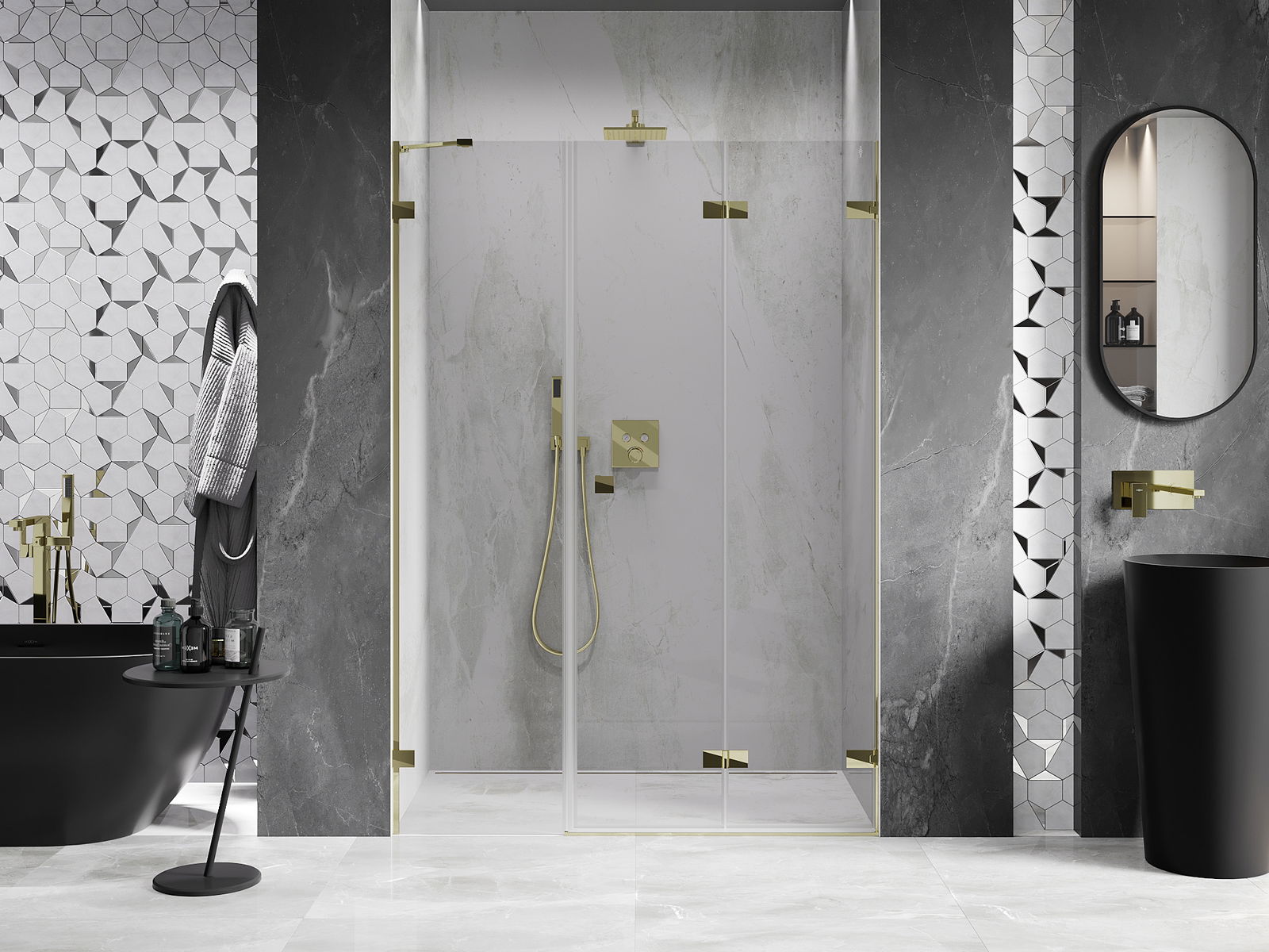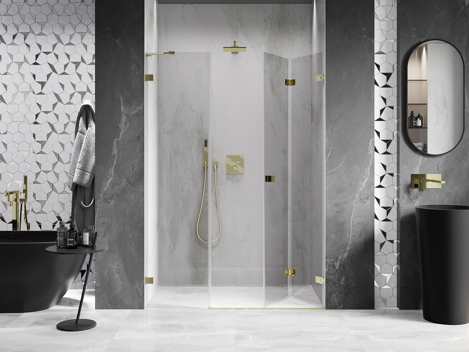 Mexen Lunar-F összecsukható jobboldali zuhanyajtó 130 cm, átlátszó, arany - 836S-130-050-50-00-P