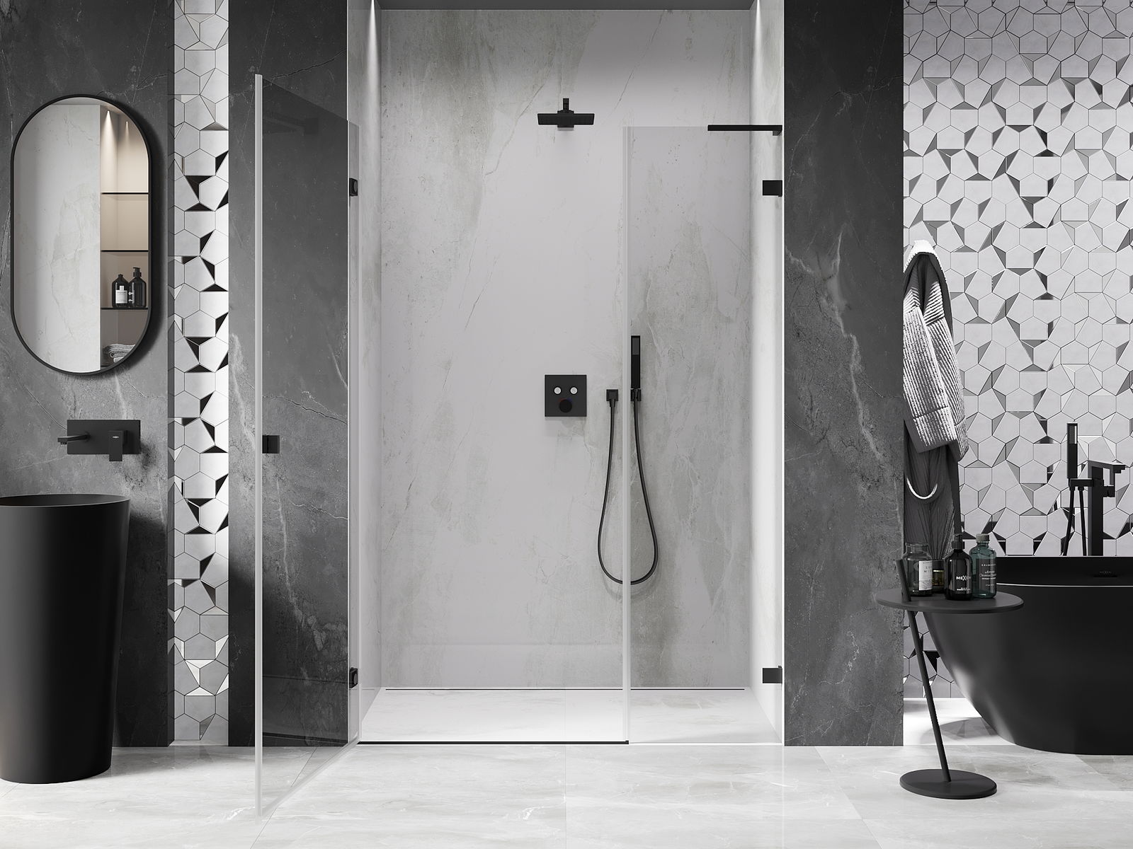 A terméket igény szerint felszerelheti akár a zuhanytálcára, akár közvetlenül a padlóra. Az univerzális szerelési mód lehetővé teszi a termék alkalmazkodását különböző típusú fürdőszobákhoz és térbeli konfigurációkhoz.