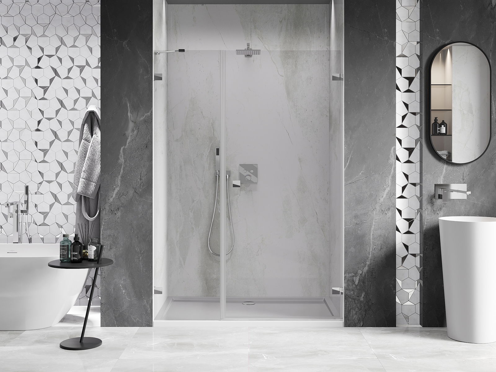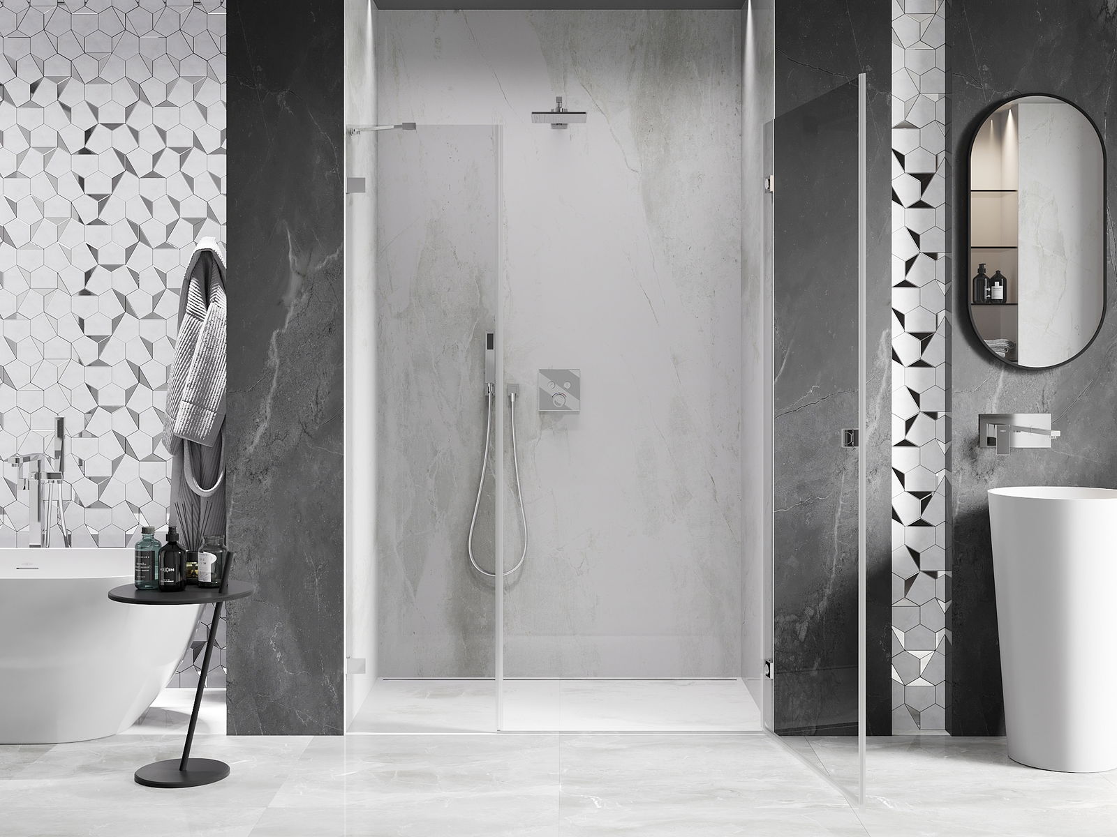 A terméket igény szerint felszerelheti akár a zuhanytálcára, akár közvetlenül a padlóra. Az univerzális szerelési mód lehetővé teszi a termék alkalmazkodását különböző típusú fürdőszobákhoz és térbeli konfigurációkhoz.